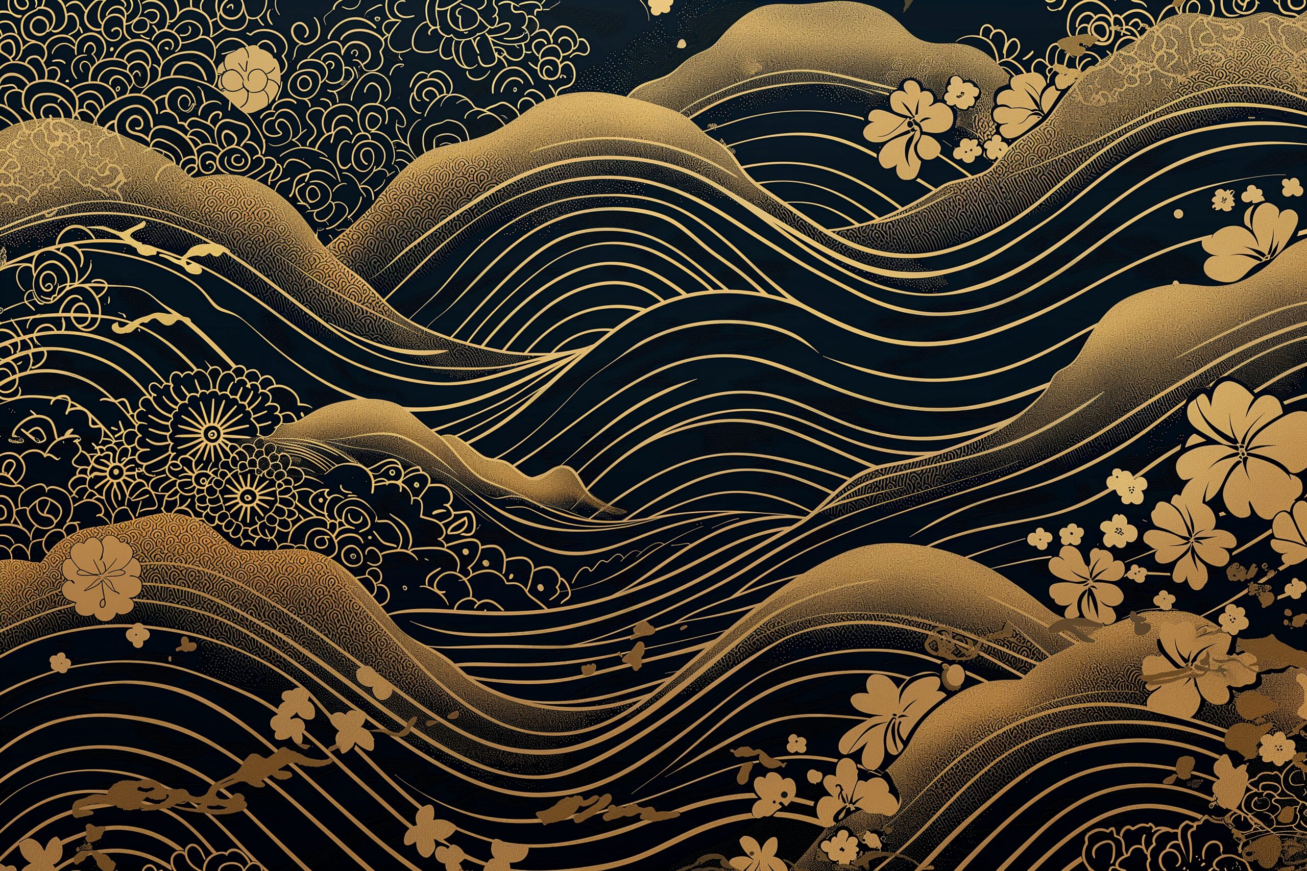 ブラック×ゴールドの和柄03