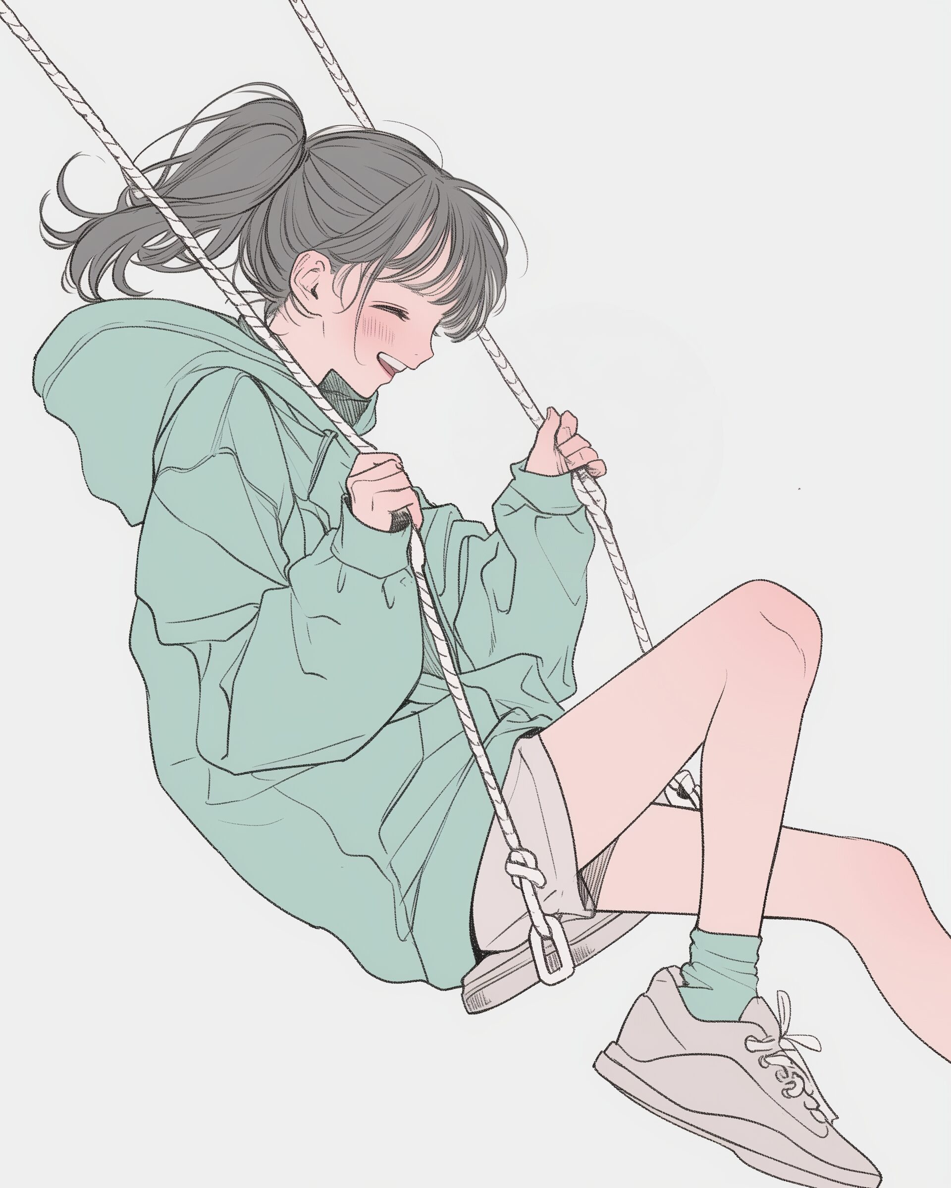 検索タグ:イラスト、ファッション、キャラクター、女性、女、女の子、女子、女の人、アニメ、漫画、マンガ、美人、美女、若い、かわいい、可愛い、カワイイ、人物、顔、美しい、綺麗、きれい、キレイ、アート、お洒落、女子高生、JK、挿絵、夏、春、パステルカラー、春服、インスタ、Instagram、パーカー女子、ブランコ、緑、グリーン、Green