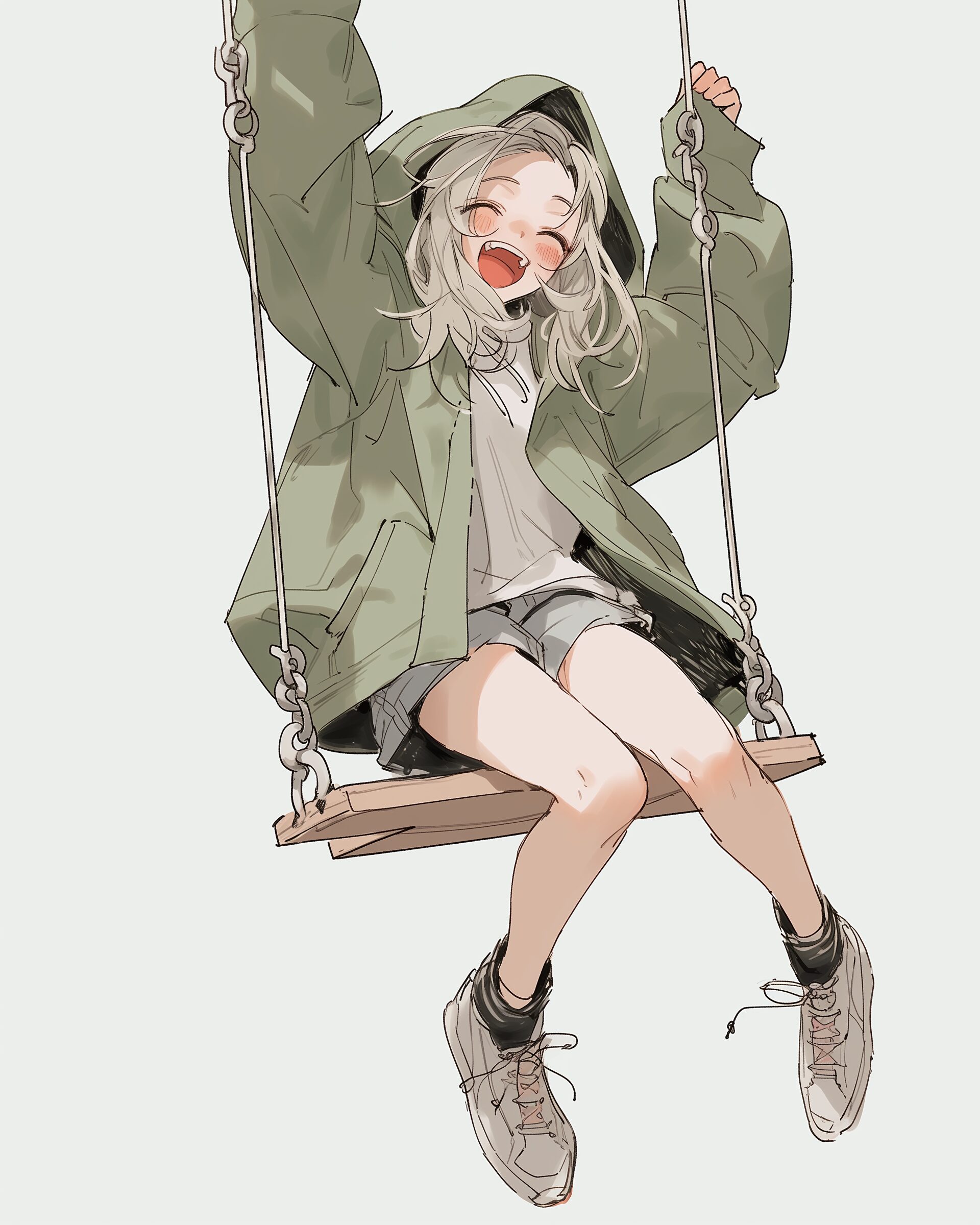 検索タグ:イラスト、ファッション、キャラクター、女性、女、女の子、女子、女の人、アニメ、漫画、マンガ、美人、美女、若い、かわいい、可愛い、カワイイ、人物、顔、美しい、綺麗、きれい、キレイ、アート、お洒落、女子高生、JK、挿絵、夏、春、パステルカラー、春服、インスタ、Instagram、パーカー女子、ブランコ、緑、グリーン、Green