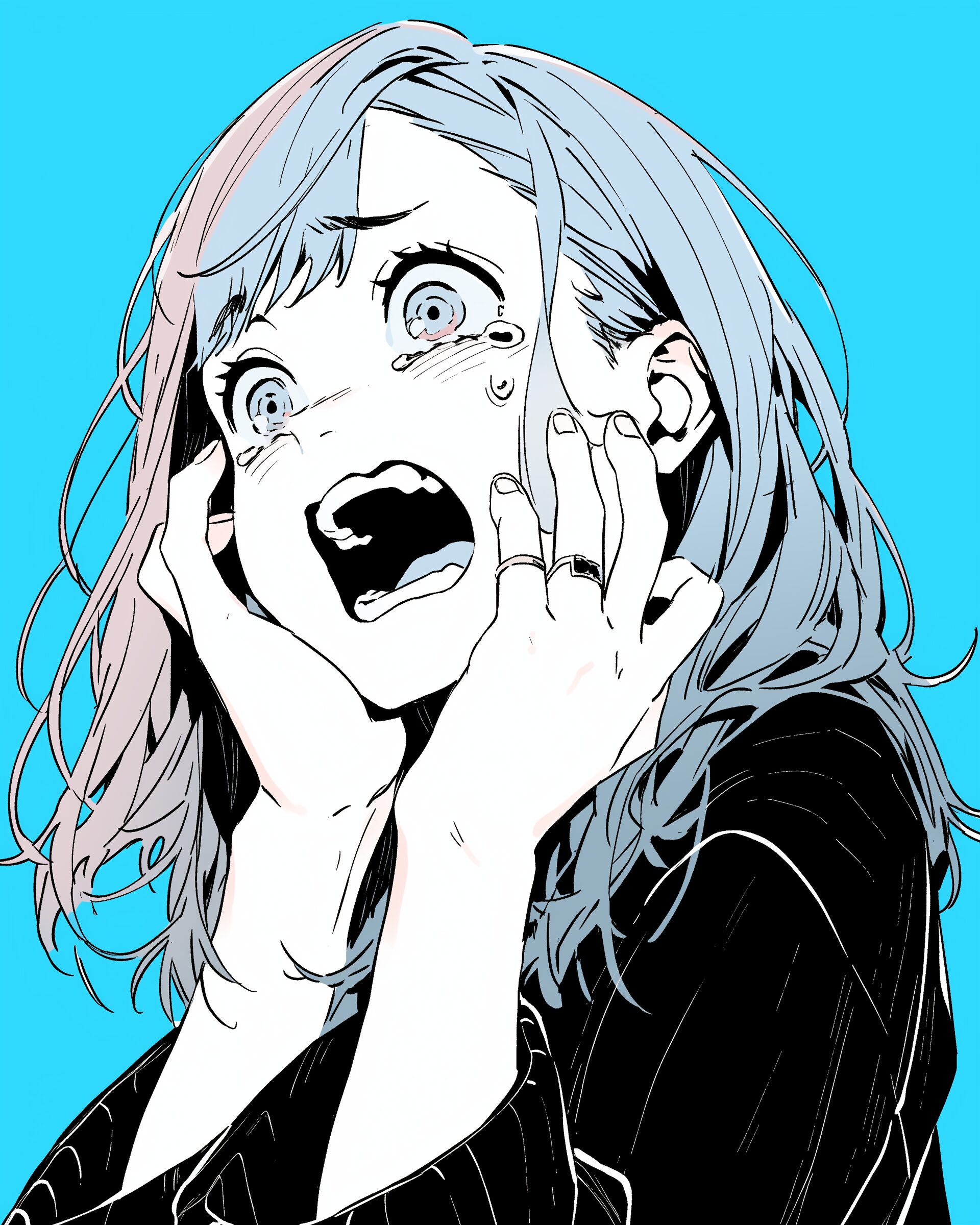 検索タグ:イラスト、ファッション、キャラクター、女性、女、女の子、女子、女の人、アニメ、漫画、マンガ、美人、美女、若い、かわいい、可愛い、カワイイ、人物、顔、美しい、綺麗、きれい、キレイ、アート、お洒落、女子高生、JK、挿絵、夏、春、パステルカラー、トップス、春服、インスタ、Instagram、青、ブルー、Blue、驚き、びっくり、ビックリ、驚く、焦る、叫ぶ、怒る、怒り、anger