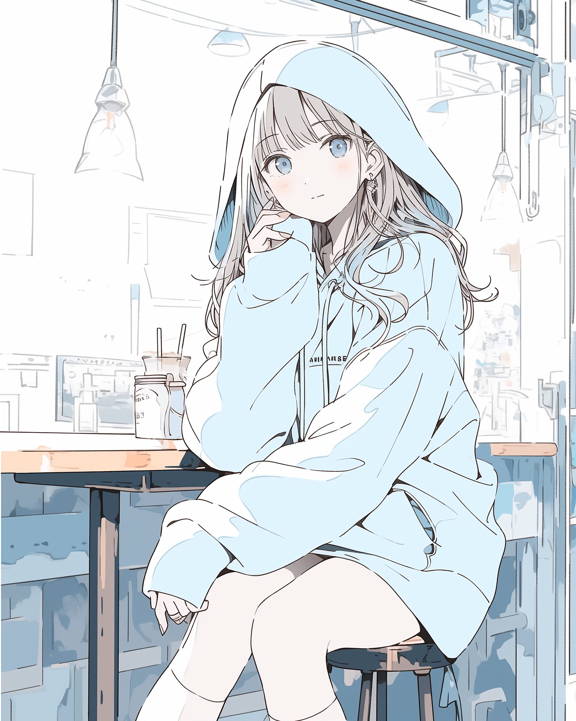 検索タグ:イラスト、ファッション、キャラクター、女性、女、女の子、女子、女の人、アニメ、漫画、マンガ、美人、美女、若い、かわいい、可愛い、カワイイ、人物、顔、美しい、綺麗、きれい、キレイ、アート、洋服、お洒落、青、ブルー、パーカー女子、パーカー、水色、女子高生、JK