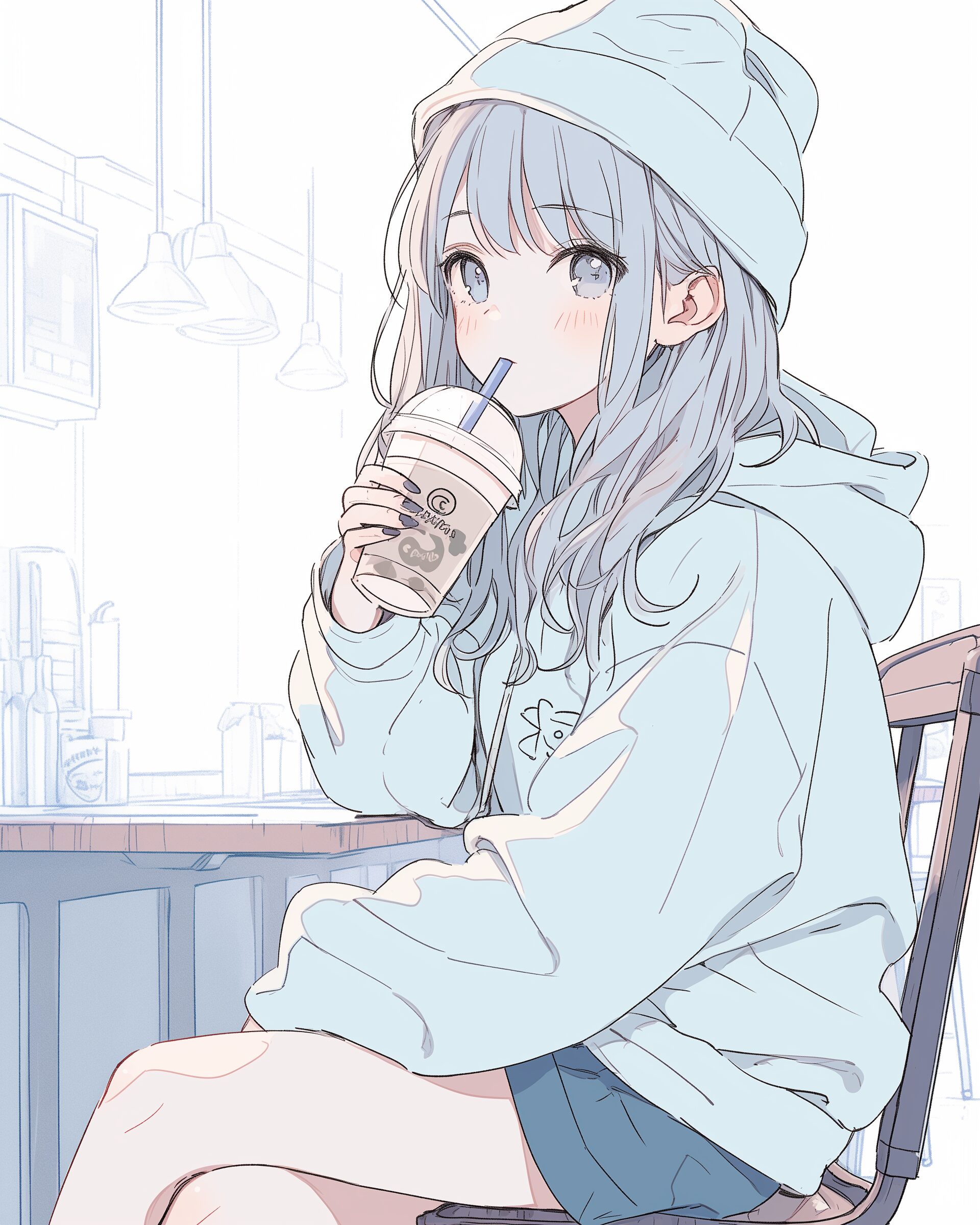 検索タグ:イラスト、ファッション、キャラクター、女性、女、女の子、女子、女の人、アニメ、漫画、マンガ、美人、美女、若い、かわいい、可愛い、カワイイ、人物、顔、美しい、綺麗、きれい、キレイ、アート、洋服、お洒落、青、ブルー、パーカー女子、パーカー、水色、女子高生、JK