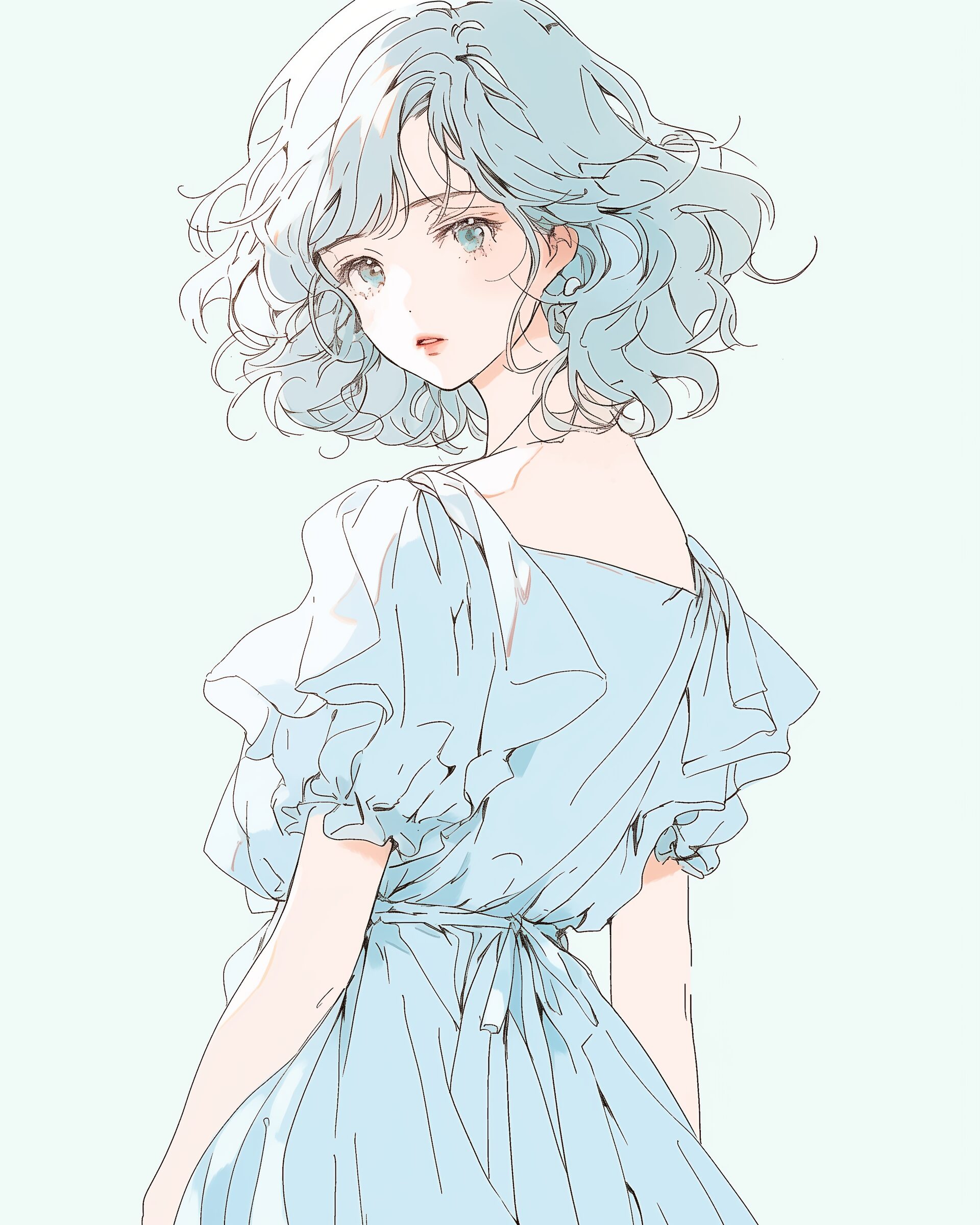 検索タグ:イラスト、ファッション、キャラクター、女性、女、女の子、女子、女の人、アニメ、漫画、マンガ、美人、美女、若い、かわいい、可愛い、カワイイ、人物、顔、美しい、綺麗、きれい、キレイ、アート、お洒落、女子高生、JK、挿絵、夏、春、ブルー、青、ワンピース、春服、大人