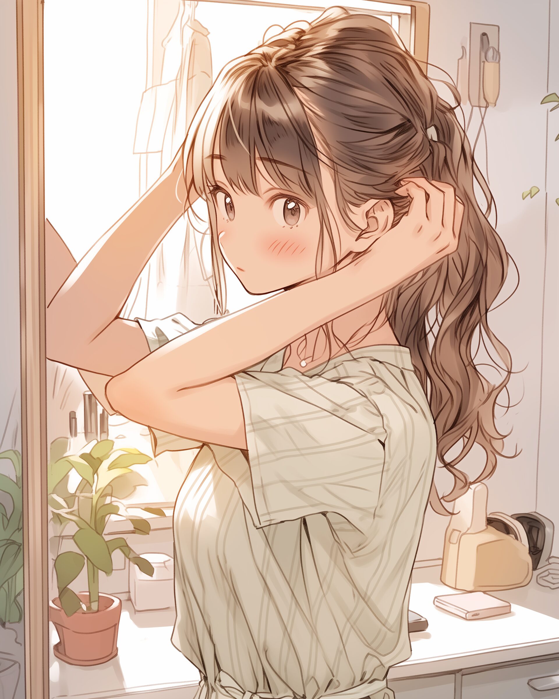 検索タグ:イラスト、ファッション、キャラクター、女性、女、女の子、女子、女の人、アニメ、漫画、マンガ、美人、美女、若い、かわいい、可愛い、カワイイ、人物、顔、美しい、綺麗、きれい、キレイ、アート、お洒落、女子高生、JK、挿絵、夏、春、パステルカラー、春服、インスタ、Instagram、夏、夏服、summer、fashion、サムネイル、アイキャッチ、コピースペース、beige、ベージュ、ヘアアレンジ、髪をセット
