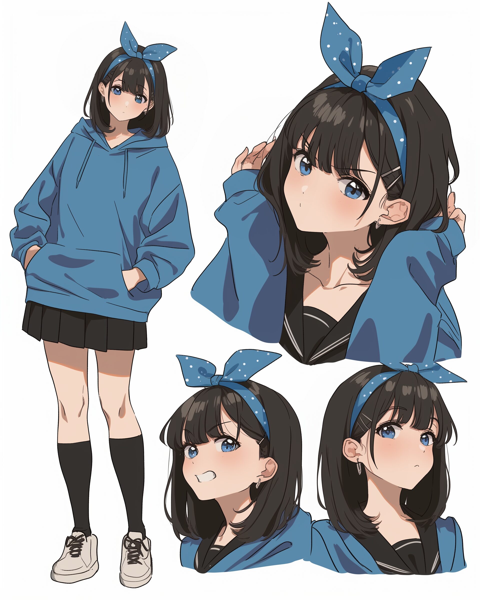 検索タグ:イラスト、ファッション、キャラクター、女性、女、女の子、女子、女の人、アニメ、漫画、マンガ、美人、美女、若い、かわいい、可愛い、カワイイ、人物、顔、美しい、綺麗、きれい、キレイ、アート、お洒落、挿絵、インスタ、Instagram、AI生成画像、fashion、コピースペース、おしゃれ、オシャレ、秋、秋服、パーカー女子、ヘアバンド、焦る、恥ずかしい、BLUE、青、ブルー、喜怒哀楽