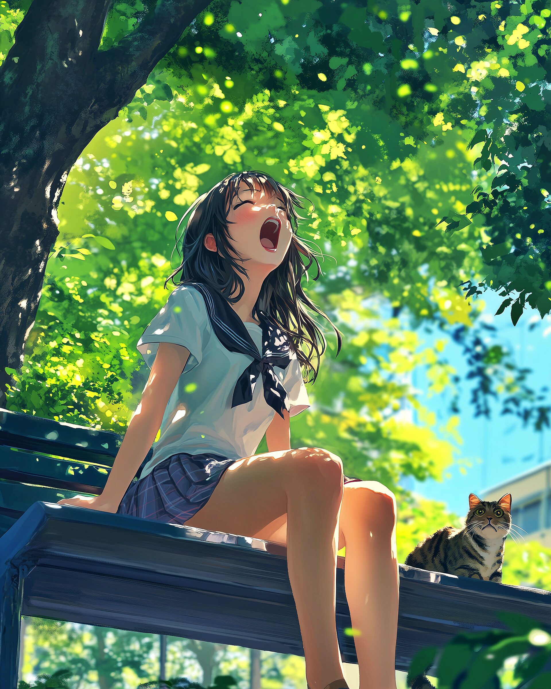 検索タグ:イラスト、ファッション、キャラクター、女性、女、女の子、女子、女の人、アニメ、漫画、マンガ、美人、美女、若い、かわいい、可愛い、カワイイ、人物、顔、美しい、綺麗、きれい、キレイ、アート、お洒落、女子高生、JK、挿絵、夏、春、パステルカラー、春服、インスタ、Instagram、fashion、サムネイル、アイキャッチ、コピースペース、座る、ベンチ、グリーン、緑、Green、田舎