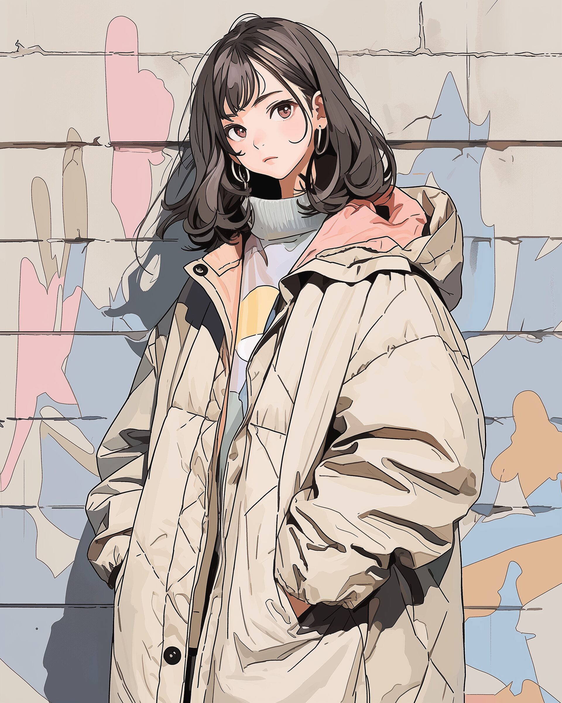 検索タグ:イラスト、ファッション、キャラクター、女性、女、女の子、女子、女の人、アニメ、漫画、マンガ、美人、美女、若い、かわいい、可愛い、カワイイ、萌え、萌え系、萌えキャラ、人物、顔、美しい、綺麗、きれい、キレイ、芸術、アート、顔、冬服、冬、洋服、お洒落、おしゃれ、AI生成画像、オシャレ、コーデ、コーディネート、パーカー、パーカー女子、キュート、コート、ベージュ、女子高生、JK