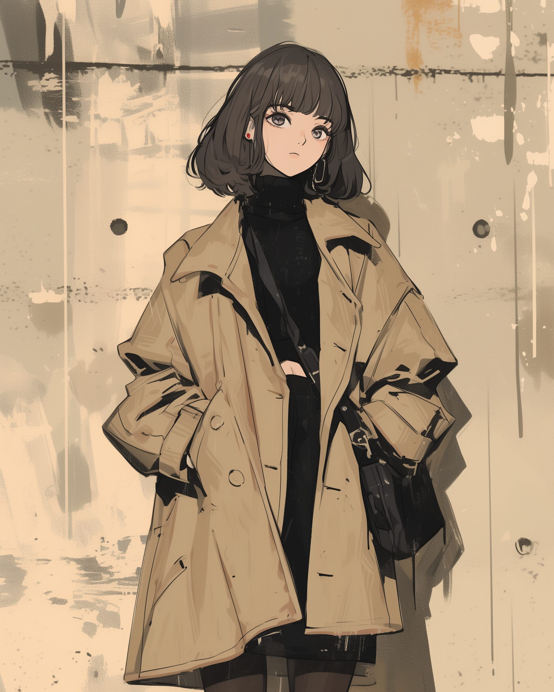 検索タグ:イラスト、ファッション、キャラクター、女性、女、女の子、女子、女の人、アニメ、漫画、マンガ、美人、美女、若い、かわいい、可愛い、カワイイ、萌え、萌え系、萌えキャラ、人物、顔、美しい、綺麗、きれい、キレイ、芸術、アート、顔、冬服、冬、洋服、お洒落、AI生成画像、おしゃれ、オシャレ、コーデ、コーディネート、パーカー、パーカー女子、キュート、コート、ベージュ、女子高生、JK、カーキ、トレンチコート