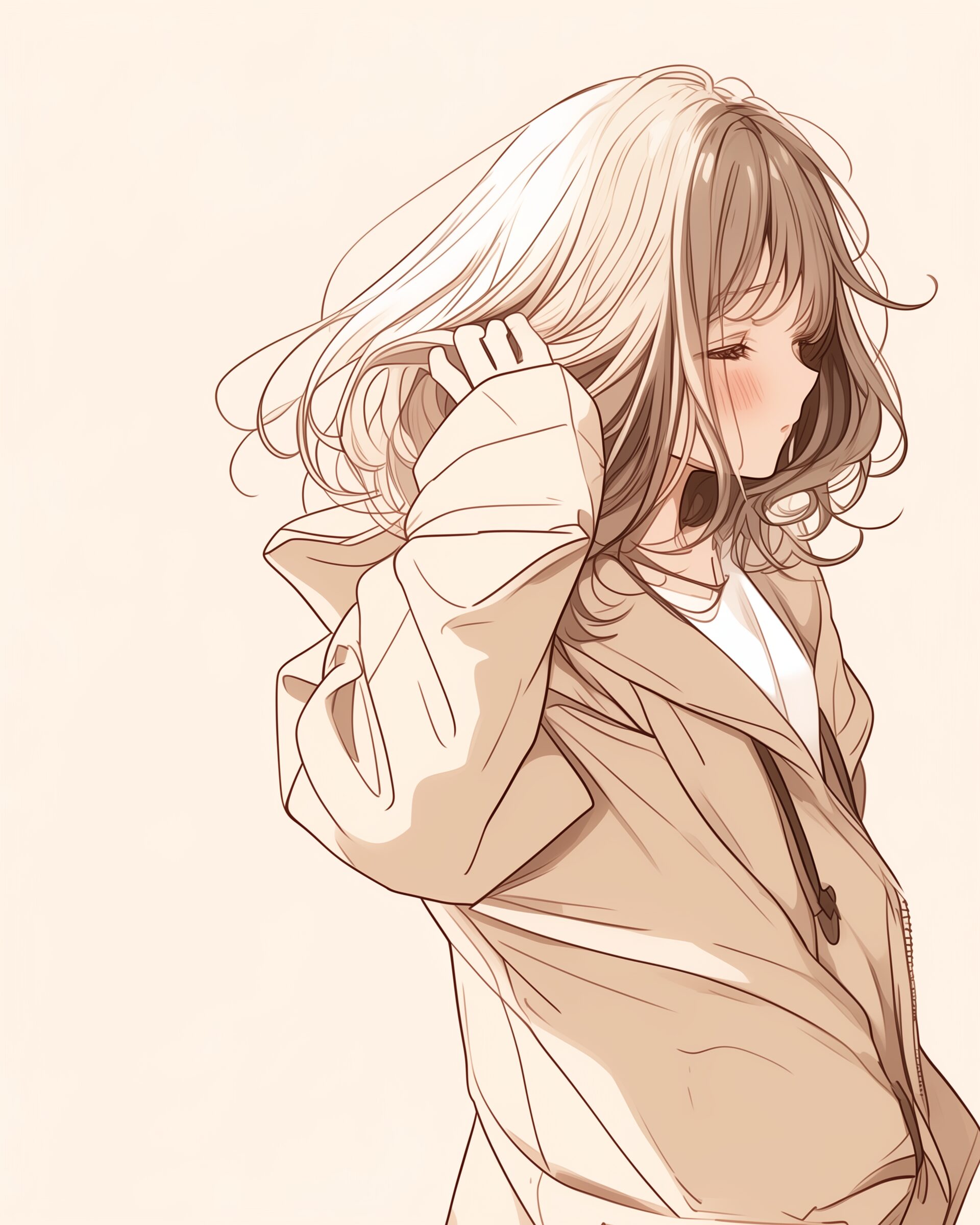 検索タグ:イラスト、ファッション、キャラクター、女性、女、女の子、女子、女の人、アニメ、漫画、マンガ、美人、美女、若い、かわいい、可愛い、カワイイ、人物、顔、美しい、綺麗、きれい、キレイ、アート、お洒落、挿絵、インスタ、Instagram、AI生成画像、fashion、コピースペース、おしゃれ、オシャレ、秋、秋服、待ち合わせ、秋冬ファッション、パーカー女子、1人、ベージュ、beige、横顔
