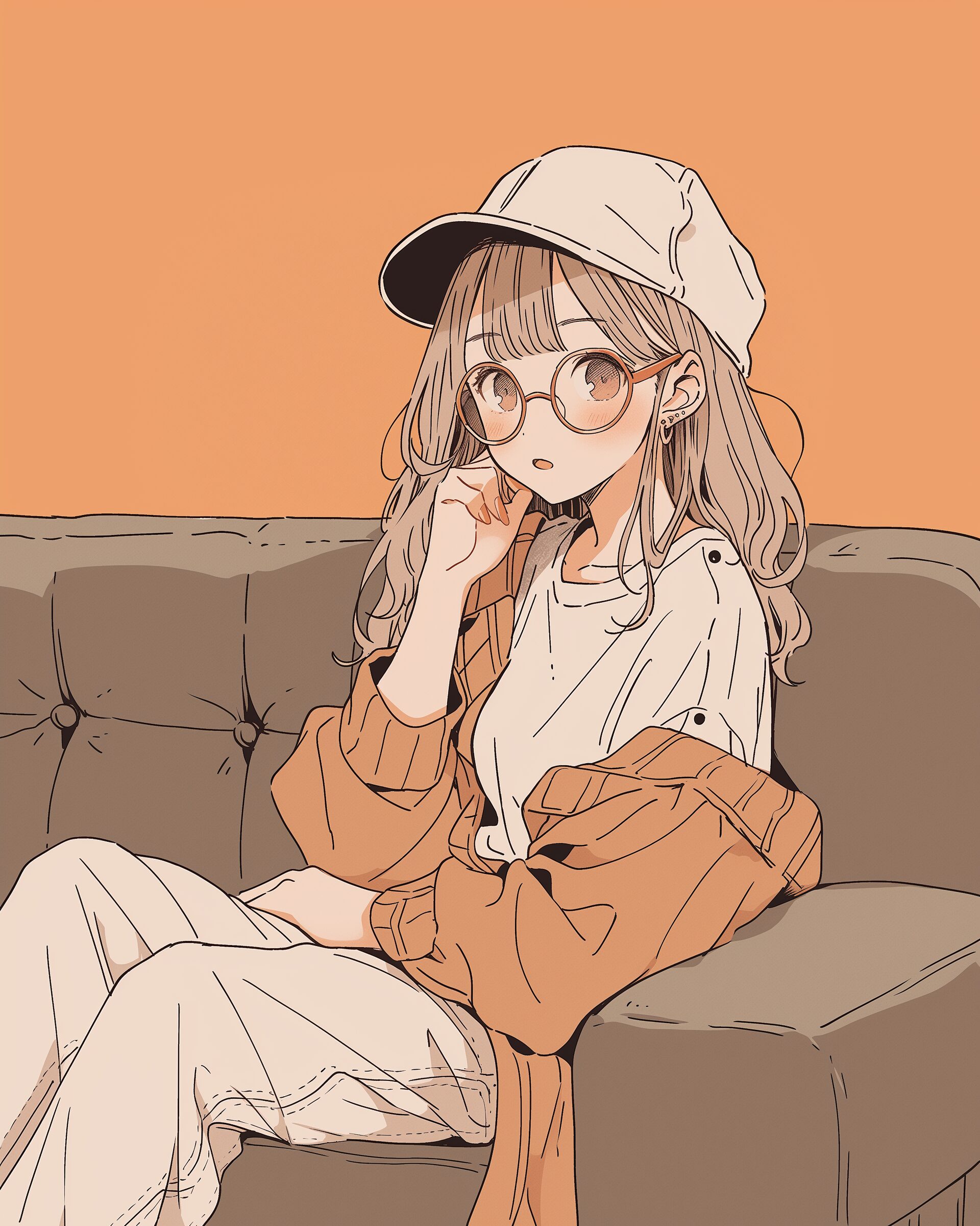 検索タグ:イラスト、ファッション、キャラクター、女性、女、女の子、女子、女の人、アニメ、漫画、マンガ、美人、美女、若い、かわいい、可愛い、カワイイ、人物、顔、美しい、綺麗、きれい、キレイ、アート、お洒落、女子高生、JK、挿絵、夏、春、パステルカラー、トップス、春服、インスタ、Instagram、ベージュ、beige、オレンジ、orange、カフェ