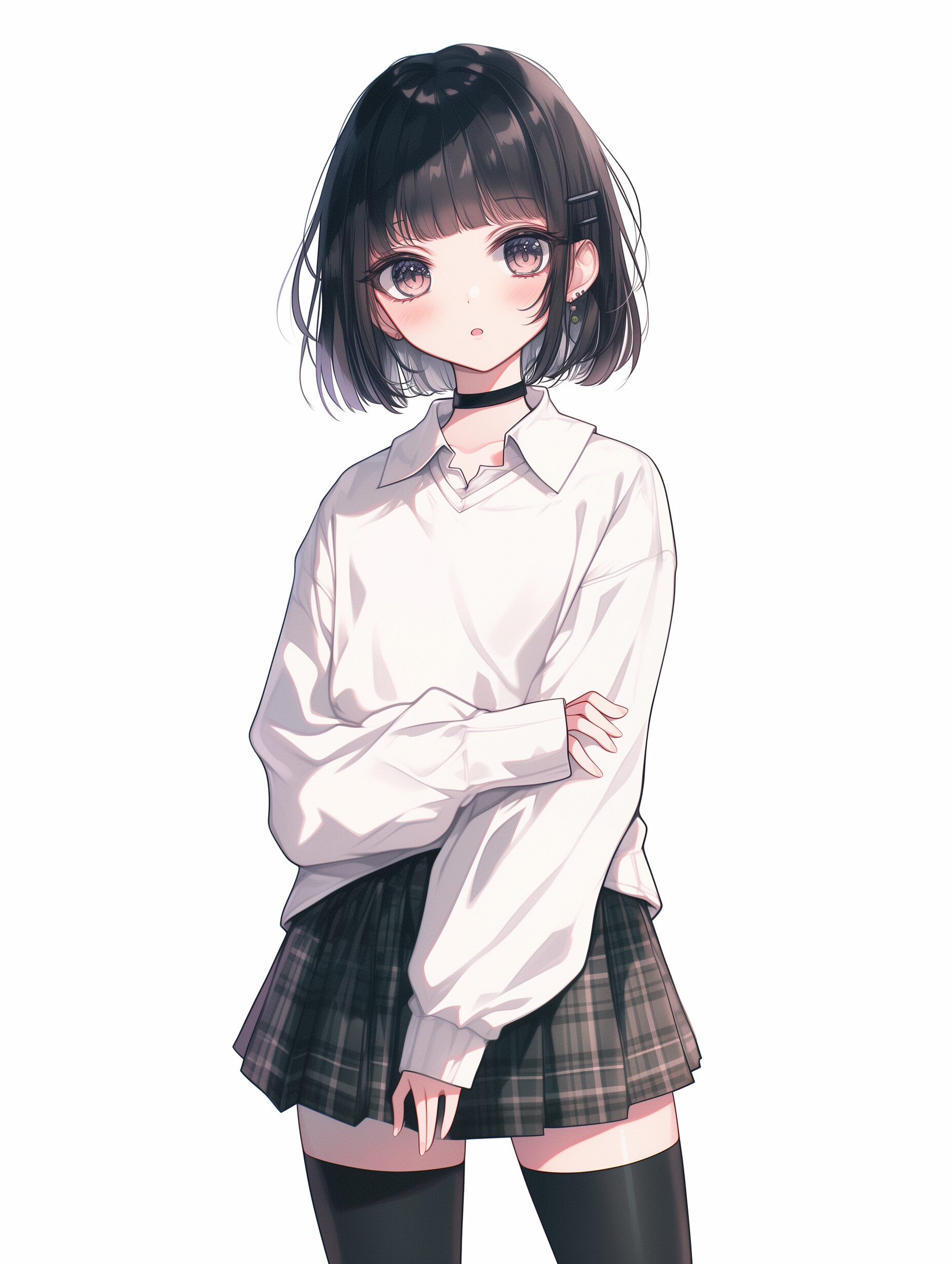 検索タグ:イラスト、キャラクター、女性、女、女の子、女子、女の人、アニメ、漫画、マンガ、美人、美女、若い、かわいい、可愛い、カワイイ、人物、顔、美しい、綺麗、きれい、キレイ、アート、お洒落、挿絵、インスタ、Instagram、AI生成画像、コピースペース、ボブヘア、スカート、ミニスカート、黒髪、ショートヘア、ファッション、オシャレ、おしゃれ