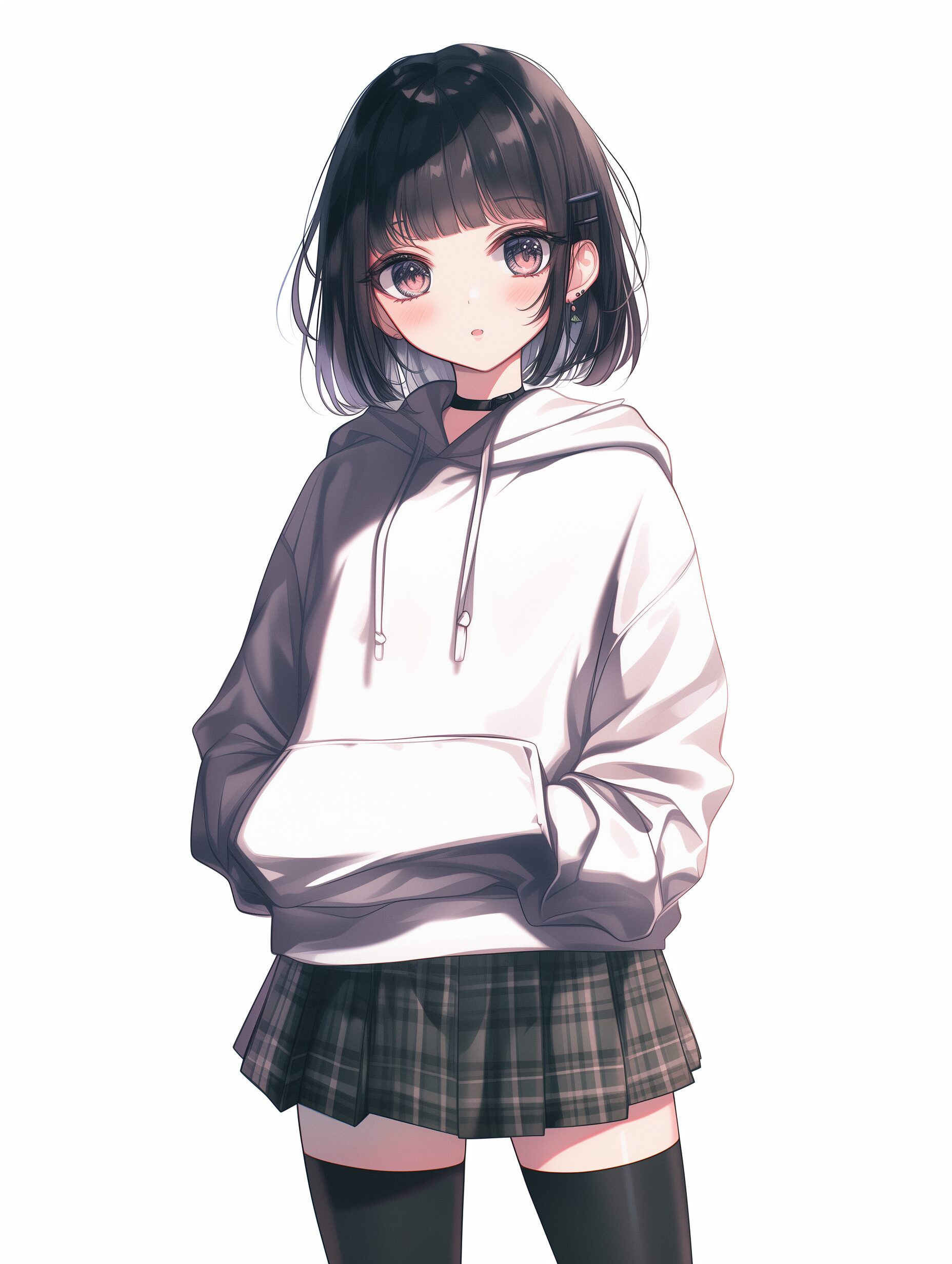 検索タグ:イラスト、キャラクター、女性、女、女の子、女子、女の人、アニメ、漫画、マンガ、美人、美女、若い、かわいい、可愛い、カワイイ、人物、顔、美しい、綺麗、きれい、キレイ、アート、お洒落、挿絵、インスタ、Instagram、AI生成画像、コピースペース、ボブヘア、スカート、ミニスカート、黒髪、ショートヘア、ファッション、オシャレ、おしゃれ