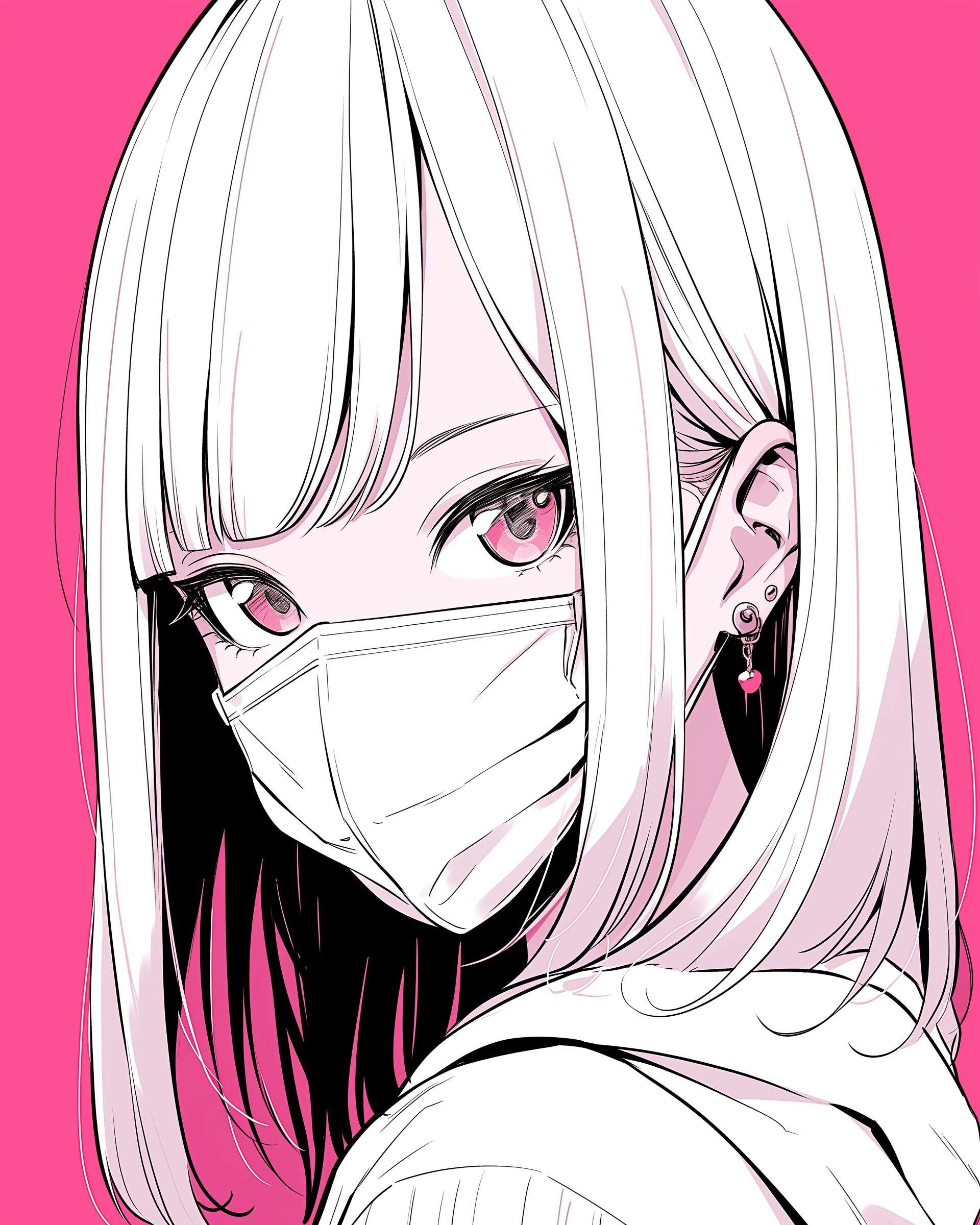 検索タグ:イラスト、ファッション、キャラクター、女性、女、女の子、女子、女の人、アニメ、漫画、マンガ、美人、美女、若い、かわいい、可愛い、カワイイ、人物、顔、美しい、綺麗、きれい、キレイ、アート、お洒落、女子高生、JK、挿絵、マスク、ピンク