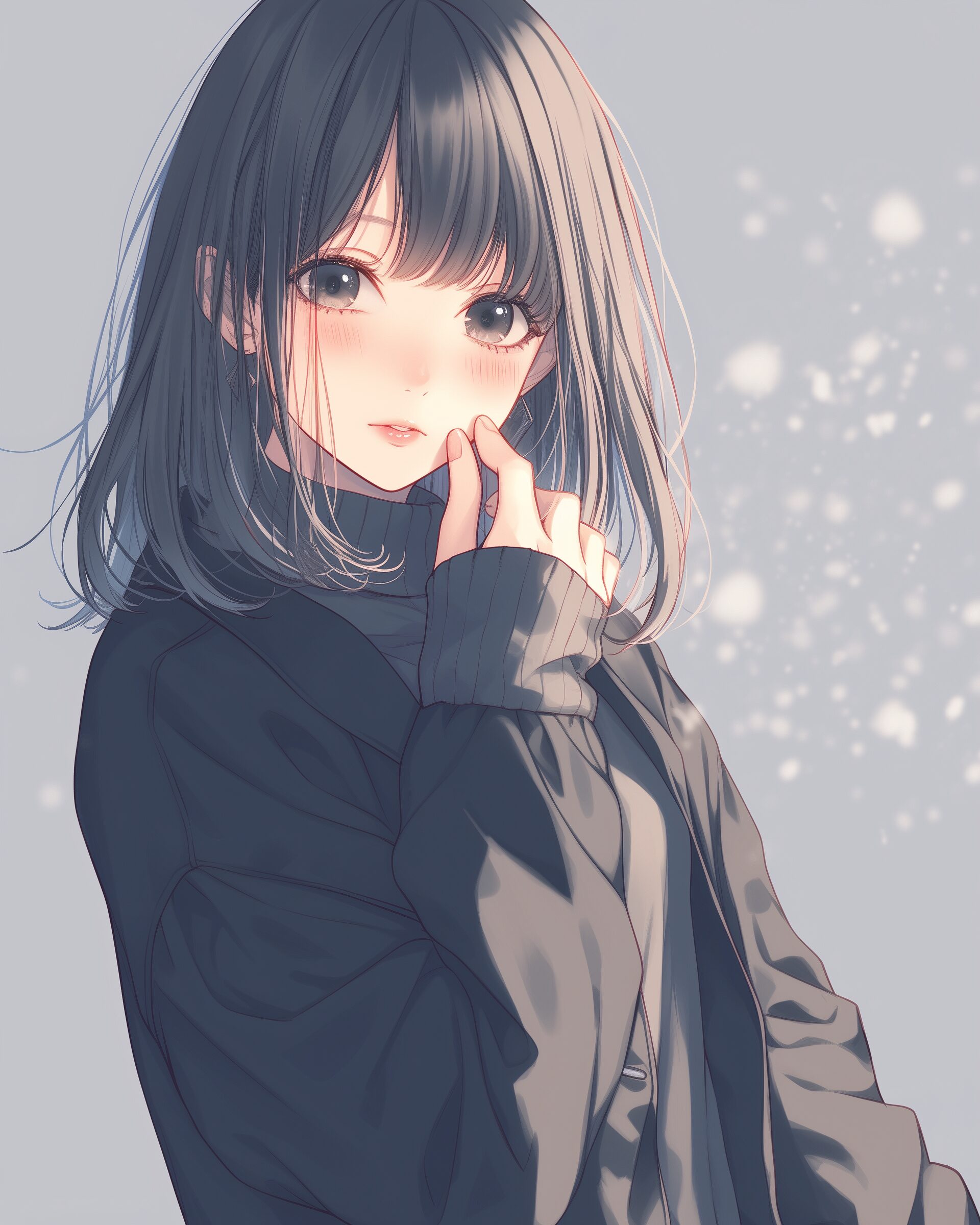検索タグ:イラスト、キャラクター、女子、女の子、女性、女、女の人、アニメ、漫画、マンガ、若い、人物、顔、美しい、綺麗、きれい、キレイ、アート、お洒落、挿絵、インスタ、Instagram、AI生成画像、コピースペース、かわいい、可愛い、カワイイ、黒髪、コーディネート、ファッション、マフラー、ストール、コート、ファッション