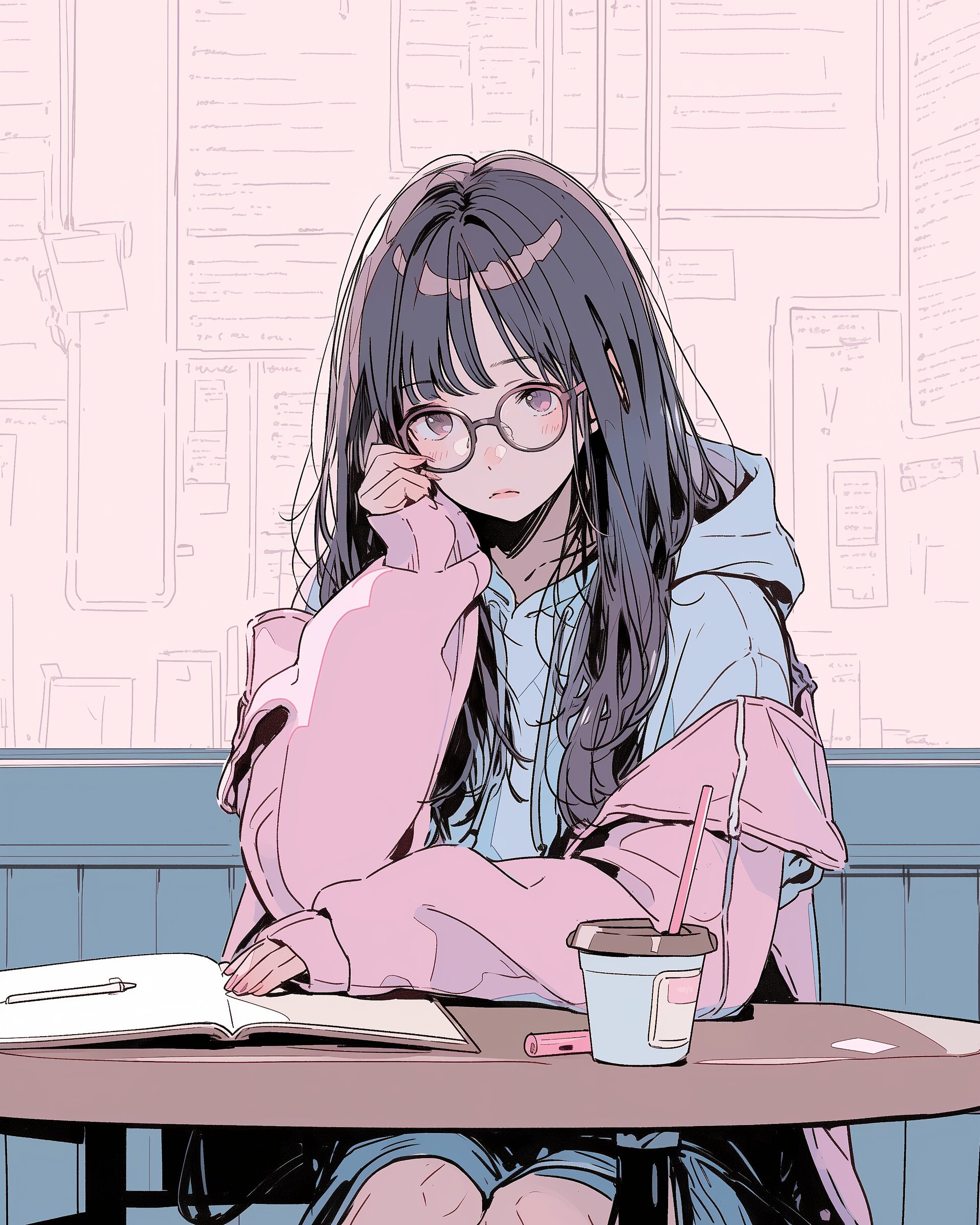 検索タグ:イラスト、ファッション、キャラクター、女性、女、女の子、女子、女の人、アニメ、漫画、マンガ、美人、美女、若い、かわいい、可愛い、カワイイ、人物、顔、美しい、綺麗、きれい、キレイ、アート、お洒落、女子高生、JK、挿絵、夏、春、パステルカラー、トップス、春服、hoodie、パーカー、パーカー女子、待ち受け画像、春服、壁紙、wallpaper、青、BLUE、イエロー、 yellow、黄色、メガネ、眼鏡、めがね、glasses