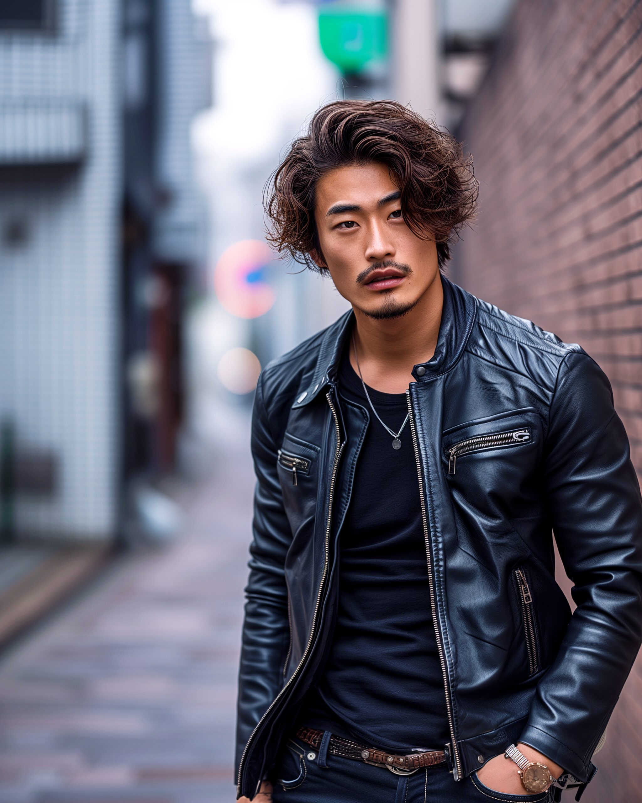 検索タグ:人物・メンズ、男性、男、男の人・かっこいい、イケメン、ブラック・髪型・ヘアーモデル・ヘアスタイル、若者、若い、20代、30代、ギャル男、メンズファッション、ファッション、服装、着画、イメージ、ライダース、ジャケット、ライダースジャケット、革、本革、コーディネート、アウター