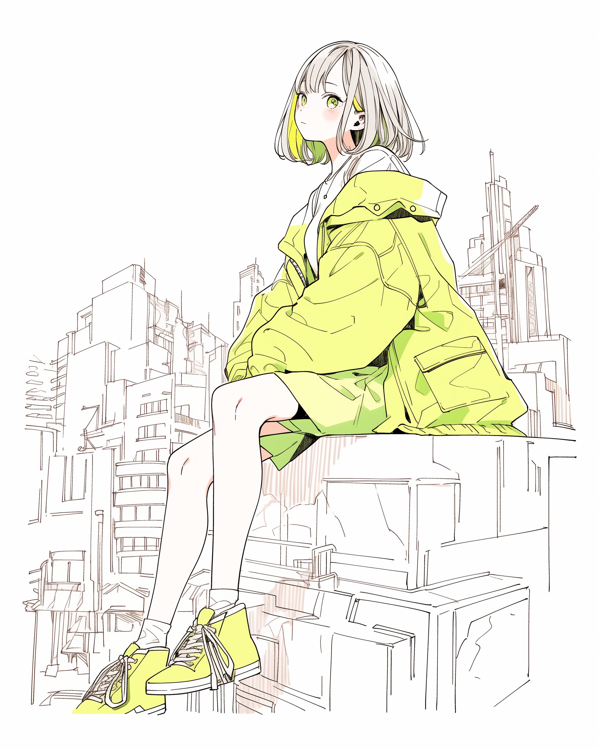 検索タグ:イラスト、ファッション、キャラクター、女性、女、女の子、女子、女の人、アニメ、漫画、マンガ、美人、美女、若い、かわいい、可愛い、カワイイ、人物、顔、美しい、綺麗、きれい、キレイ、アート、お洒落、女子高生、JK、挿絵、夏、春、パステルカラー、トップス、春服、黄緑