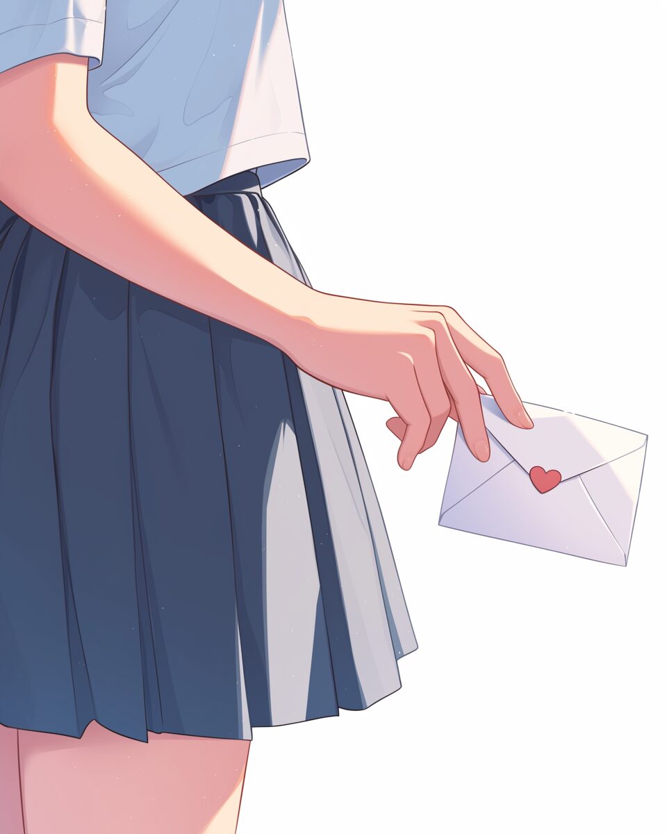検索タグ:イラスト、ファッション、キャラクター、女性、女、女の子、女子、女の人、アニメ、漫画、マンガ、美人、美女、若い、かわいい、可愛い、カワイイ、人物、顔、美しい、綺麗、きれい、キレイ、アート、お洒落、挿絵、インスタ、Instagram、AI生成画像、fashion、コピースペース、手、手元、ラブレター、手紙、告白