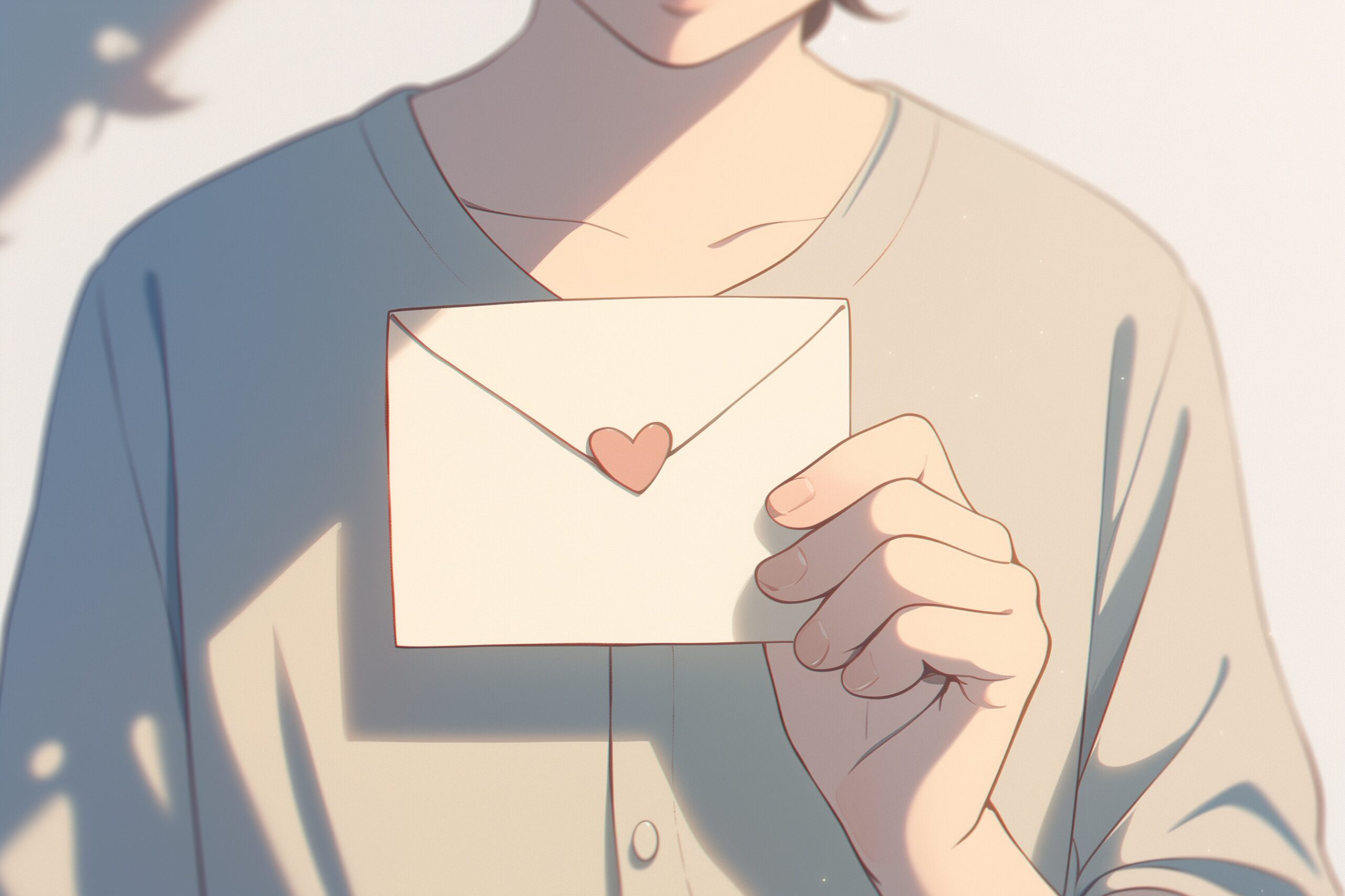 検索タグ:イラスト、キャラクター、男子、男性、男、男の人、アニメ、漫画、マンガ、若い、人物、顔、美しい、綺麗、きれい、キレイ、アート、お洒落、挿絵、インスタ、Instagram、AI生成画像、コピースペース、恋愛、恋、片思い、失恋、ラブレター、手紙、ハート、告白、気持ちを伝える、便箋、封筒