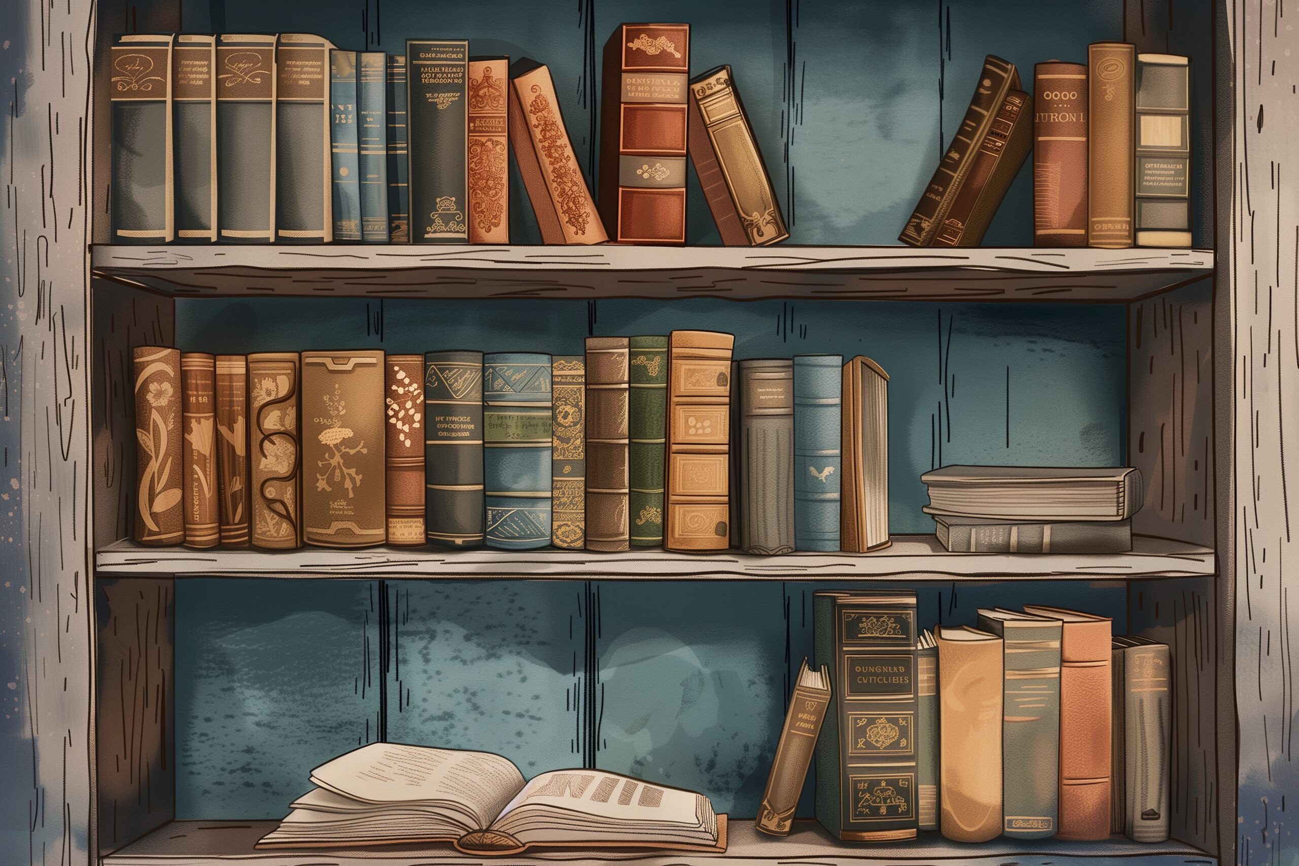 レトロな本棚イラスト03