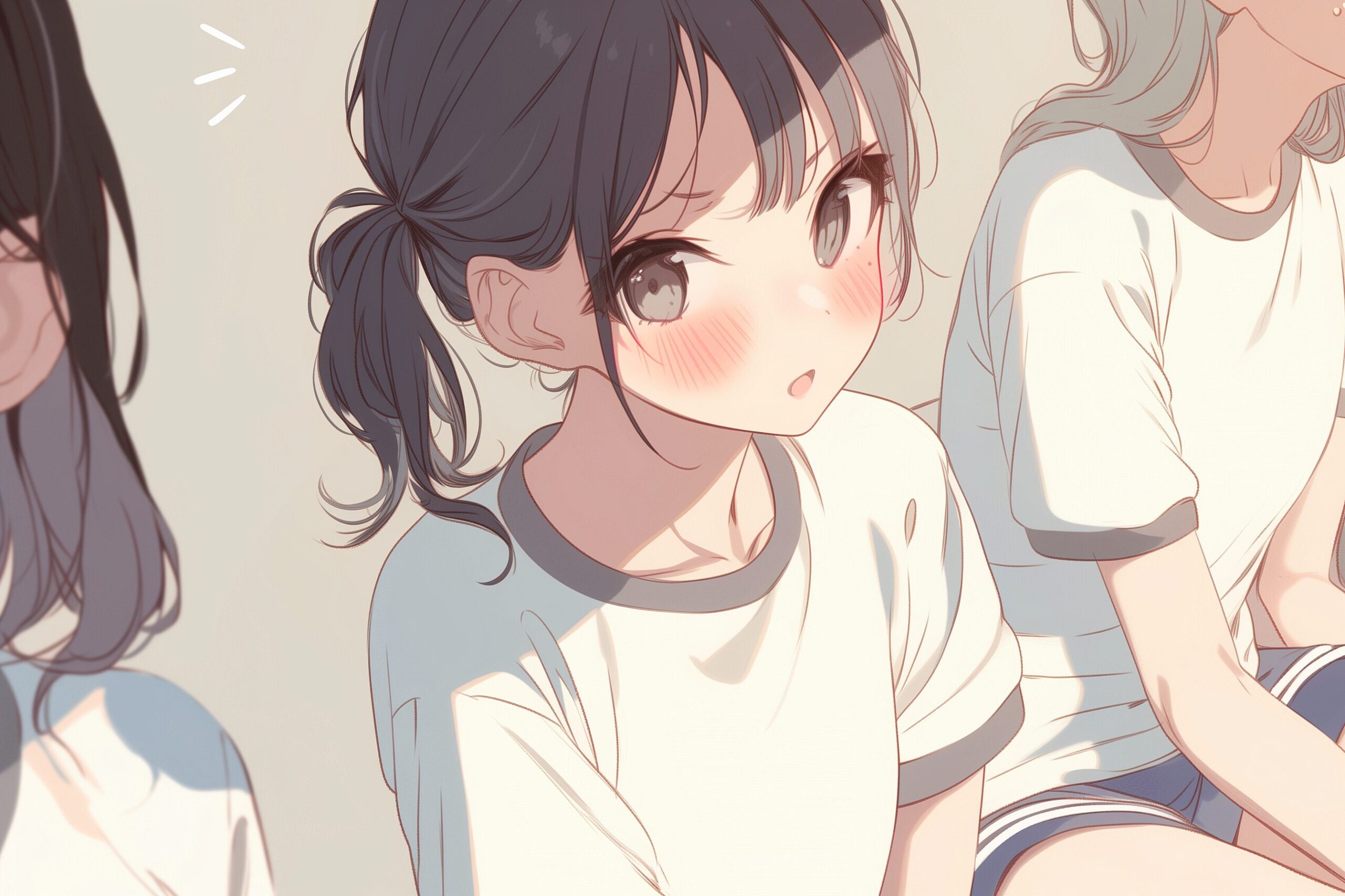 検索タグ:イラスト、ファッション、キャラクター、女性、女、女の子、女子、女の人、アニメ、漫画、マンガ、美人、美女、若い、かわいい、可愛い、カワイイ、人物、顔、美しい、綺麗、きれい、キレイ、アート、お洒落、挿絵、インスタ、Instagram、AI生成画像、fashion、コピースペース、黒髪、ショートヘア、体操着、体操服、学生、高校生、中学生