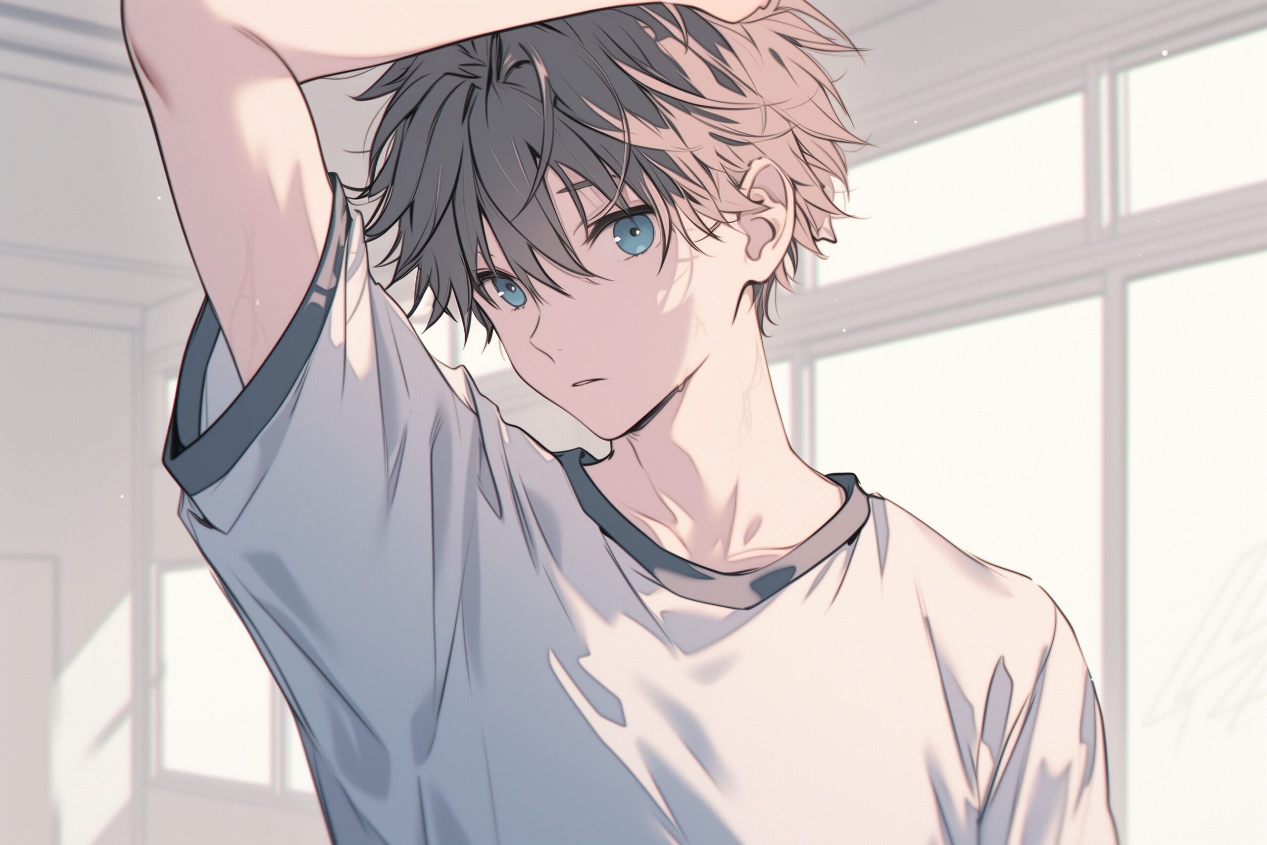 検索タグ:イラスト、ファッション、キャラクター、男性、男、男子、男の子、イケメン、男の人、アニメ、漫画、マンガ、若い、人物、顔、アート、挿絵、インスタ、Instagram、AI生成画像、fashion、コピースペース、黒髪、ショートヘア、体操着、体操服、学生、高校生、中学生