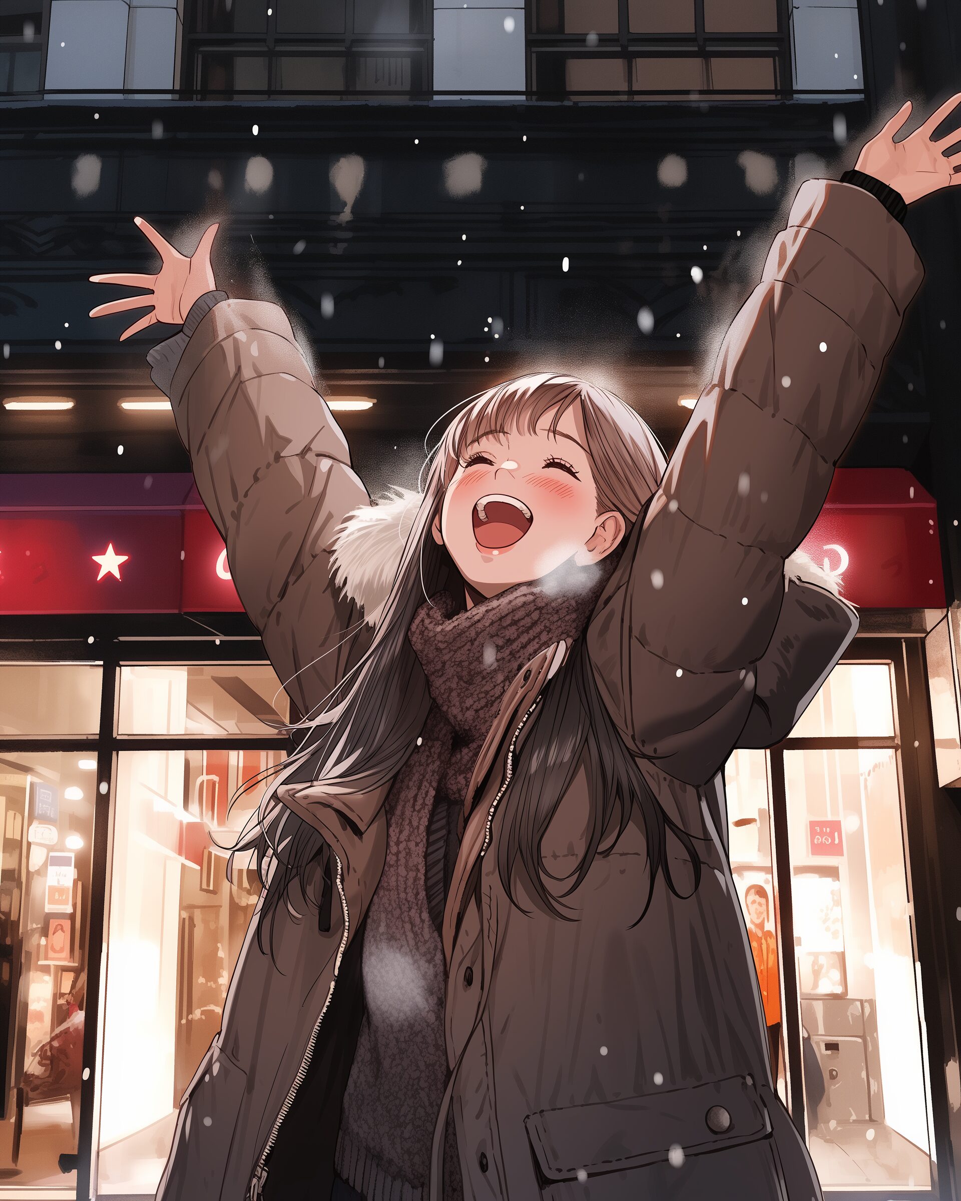 検索タグ:イラスト、ファッション、キャラクター、女性、女、女の子、女子、女の人、アニメ、漫画、マンガ、美人、美女、若い、かわいい、可愛い、カワイイ、人物、顔、美しい、綺麗、きれい、キレイ、アート、お洒落、挿絵、インスタ、Instagram、AI生成画像、fashion、コピースペース、おしゃれ、オシャレ、秋、秋服、冬服、ダウンジャケット、白、ホワイト