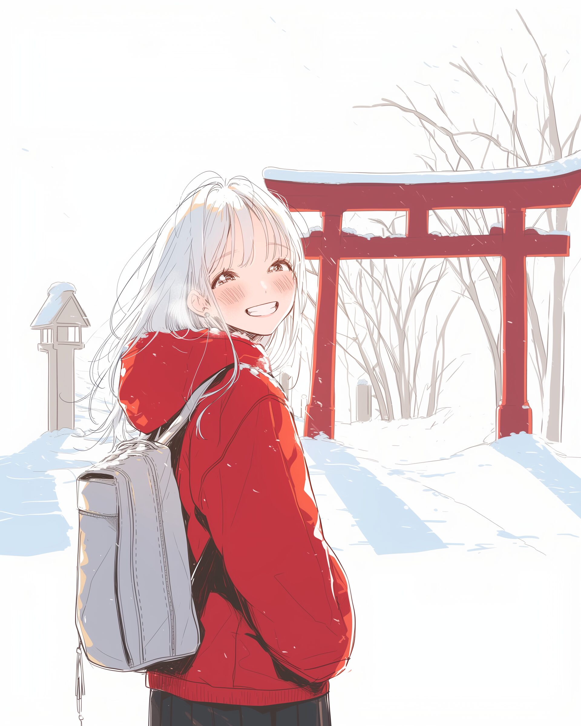 検索タグ:イラスト、ファッション、キャラクター、女性、女、女の子、女子、女の人、アニメ、漫画、マンガ、美人、美女、若い、かわいい、可愛い、カワイイ、人物、顔、美しい、綺麗、きれい、キレイ、アート、お洒落、挿絵、インスタ、Instagram、AI生成画像、fashion、コピースペース、おしゃれ、オシャレ、笑顔、銀髪、初詣、正月、新年、神社、鳥居