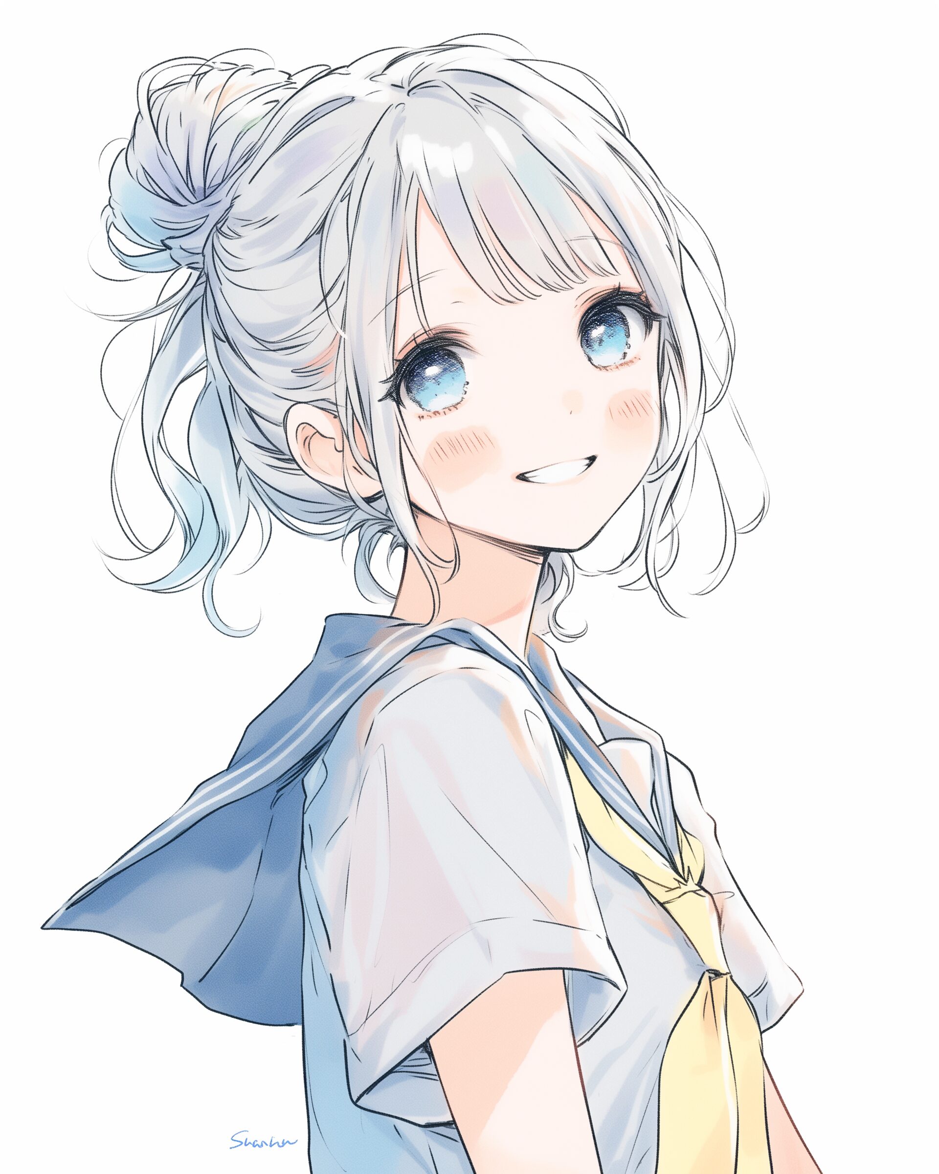 検索タグ:イラスト、ファッション、キャラクター、女性、女、女の子、女子、女の人、アニメ、漫画、マンガ、美人、美女、若い、かわいい、可愛い、カワイイ、人物、顔、美しい、綺麗、きれい、キレイ、アート、お洒落、挿絵、インスタ、Instagram、AI生成画像、fashion、コピースペース、銀髪、笑顔、制服、セーラー服