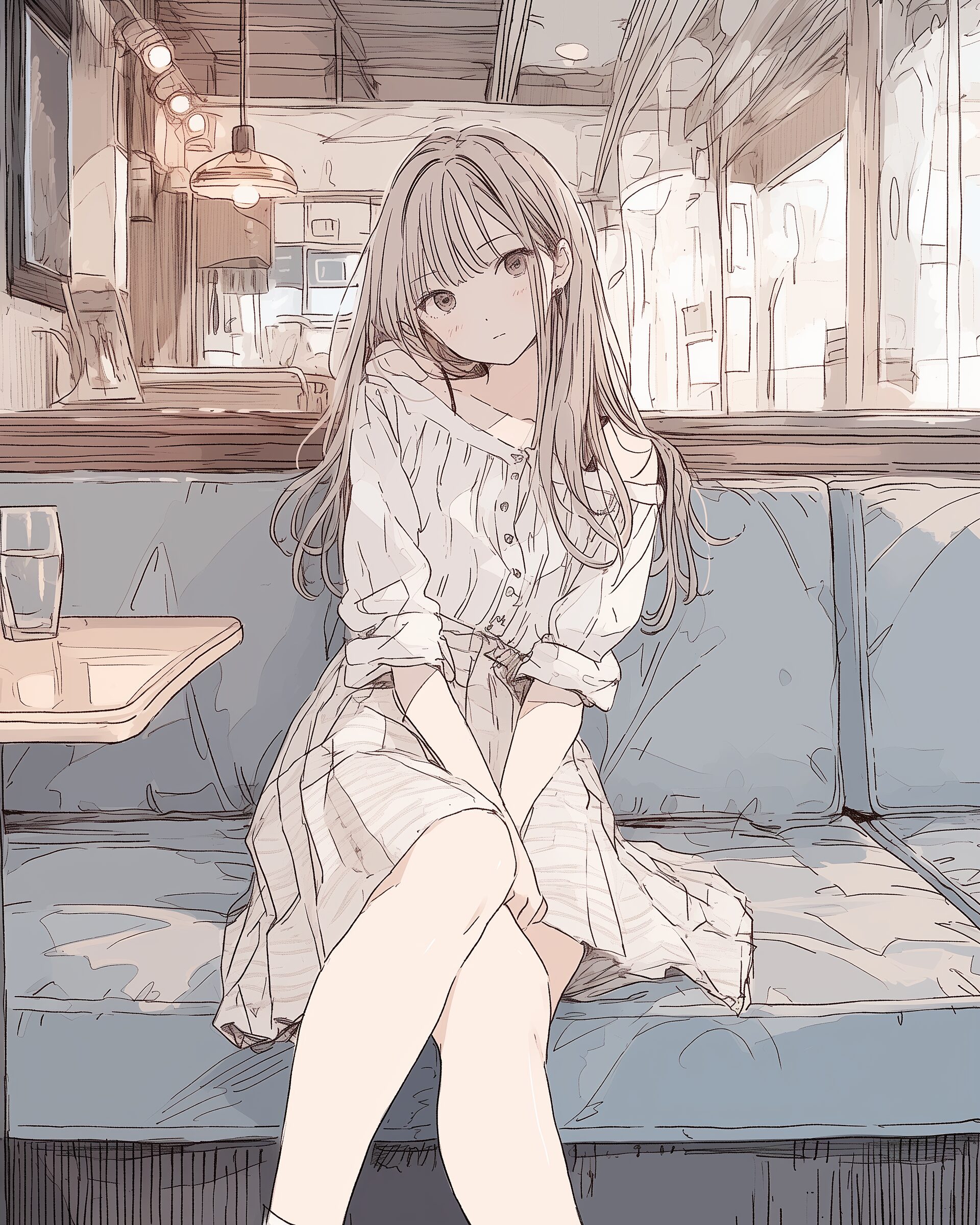 検索タグ:イラスト、ファッション、キャラクター、女性、女、女の子、女子、女の人、アニメ、漫画、マンガ、美人、美女、若い、かわいい、可愛い、カワイイ、人物、顔、美しい、綺麗、きれい、キレイ、アート、お洒落、女子高生、JK、挿絵、夏、春、パステルカラー、春服、インスタ、Instagram、夏、夏服、summer、fashion、午後のひととき、カフェ、座る、オフショル