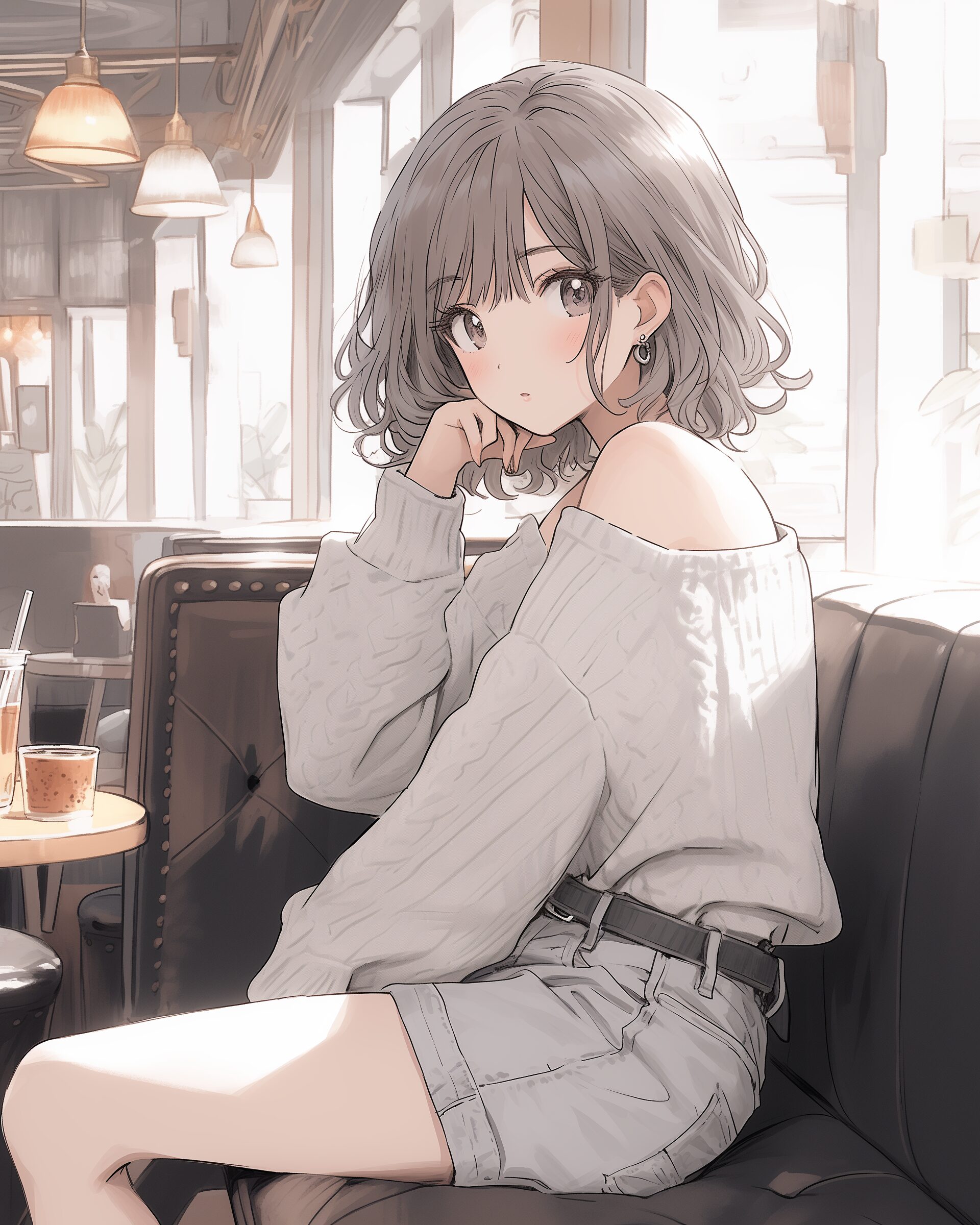 検索タグ:イラスト、ファッション、キャラクター、女性、女、女の子、女子、女の人、アニメ、漫画、マンガ、美人、美女、若い、かわいい、可愛い、カワイイ、人物、顔、美しい、綺麗、きれい、キレイ、アート、お洒落、女子高生、JK、挿絵、夏、春、パステルカラー、春服、インスタ、Instagram、夏、夏服、summer、fashion、午後のひととき、カフェ、座る、オフショル