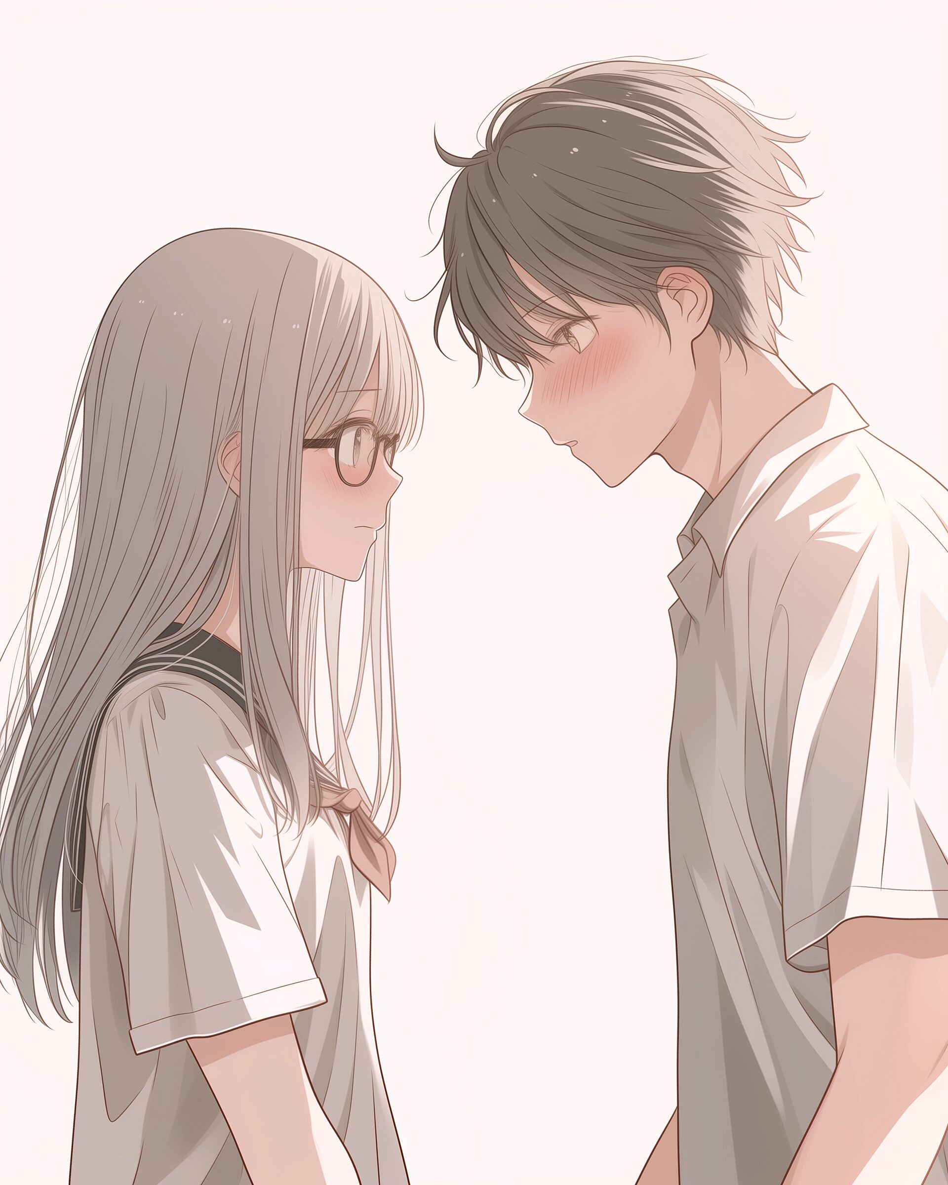 検索タグ:イラスト、ファッション、キャラクター、女性、女、女の子、女子、女の人、アニメ、漫画、マンガ、美人、美女、若い、かわいい、可愛い、カワイイ、人物、顔、美しい、綺麗、きれい、キレイ、アート、お洒落、挿絵、インスタ、Instagram、AI生成画像、fashion、コピースペース、学生、高校生、銀髪、シルバーヘア、眼鏡、メガネ、めがね、恥ずかしい、緊張、照れる、ドキドキ、胸キュン、男子、男性、男の子、告白、恋愛、恋人、カップル、向き合う