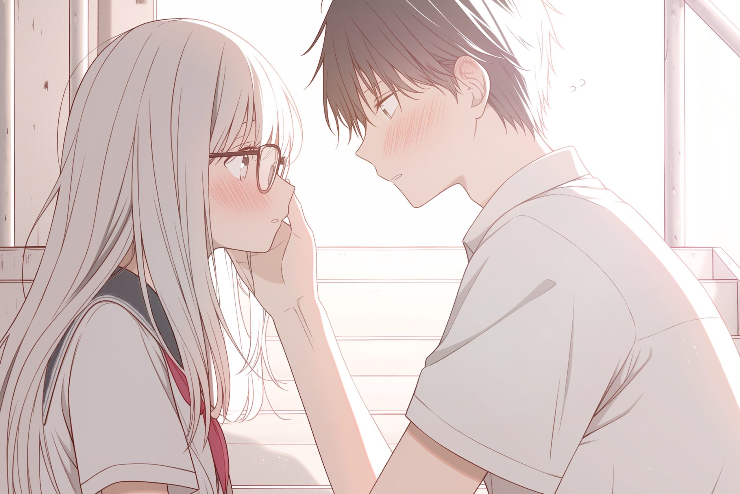 検索タグ:イラスト、ファッション、キャラクター、女性、女、女の子、女子、女の人、アニメ、漫画、マンガ、美人、美女、若い、かわいい、可愛い、カワイイ、人物、顔、美しい、綺麗、きれい、キレイ、アート、お洒落、挿絵、インスタ、Instagram、AI生成画像、fashion、コピースペース、学生、高校生、銀髪、シルバーヘア、眼鏡、メガネ、めがね、恥ずかしい、緊張、照れる、ドキドキ、胸キュン、男子、男性、男の子、告白、恋愛、恋人、カップル、向き合う