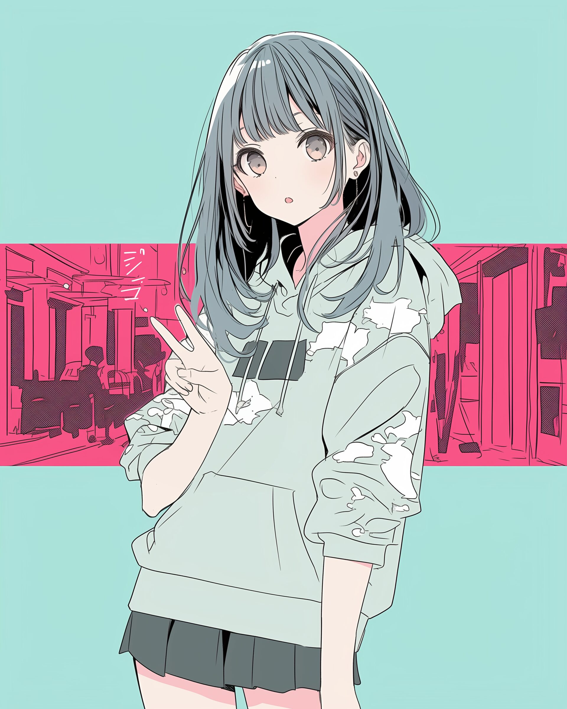 検索タグ:イラスト、ファッション、キャラクター、女性、女、女の子、女子、女の人、アニメ、漫画、マンガ、美人、美女、若い、かわいい、可愛い、カワイイ、人物、顔、美しい、綺麗、きれい、キレイ、アート、お洒落、挿絵、インスタ、Instagram、fashion、コピースペース、おしゃれ、オシャレ、和風、和、和柄、和柄背景、かっこいい、パーカー女子、ピンク、ピース