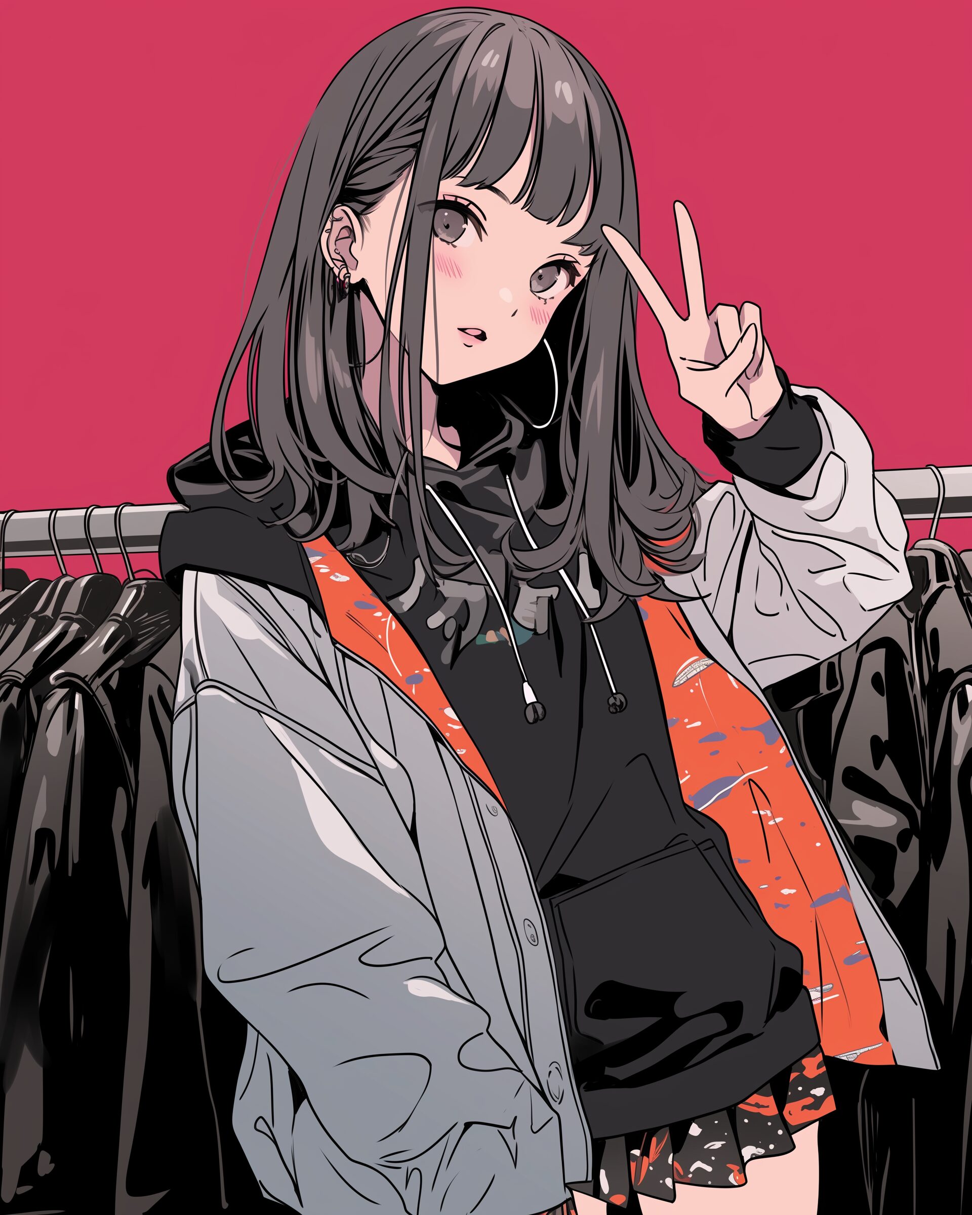 検索タグ:イラスト、ファッション、キャラクター、女性、女、女の子、女子、女の人、アニメ、漫画、マンガ、美人、美女、若い、かわいい、可愛い、カワイイ、人物、顔、美しい、綺麗、きれい、キレイ、アート、お洒落、挿絵、インスタ、Instagram、fashion、コピースペース、おしゃれ、オシャレ、和風、和、和柄、和柄背景、かっこいい、パーカー女子、ピンク、ピース