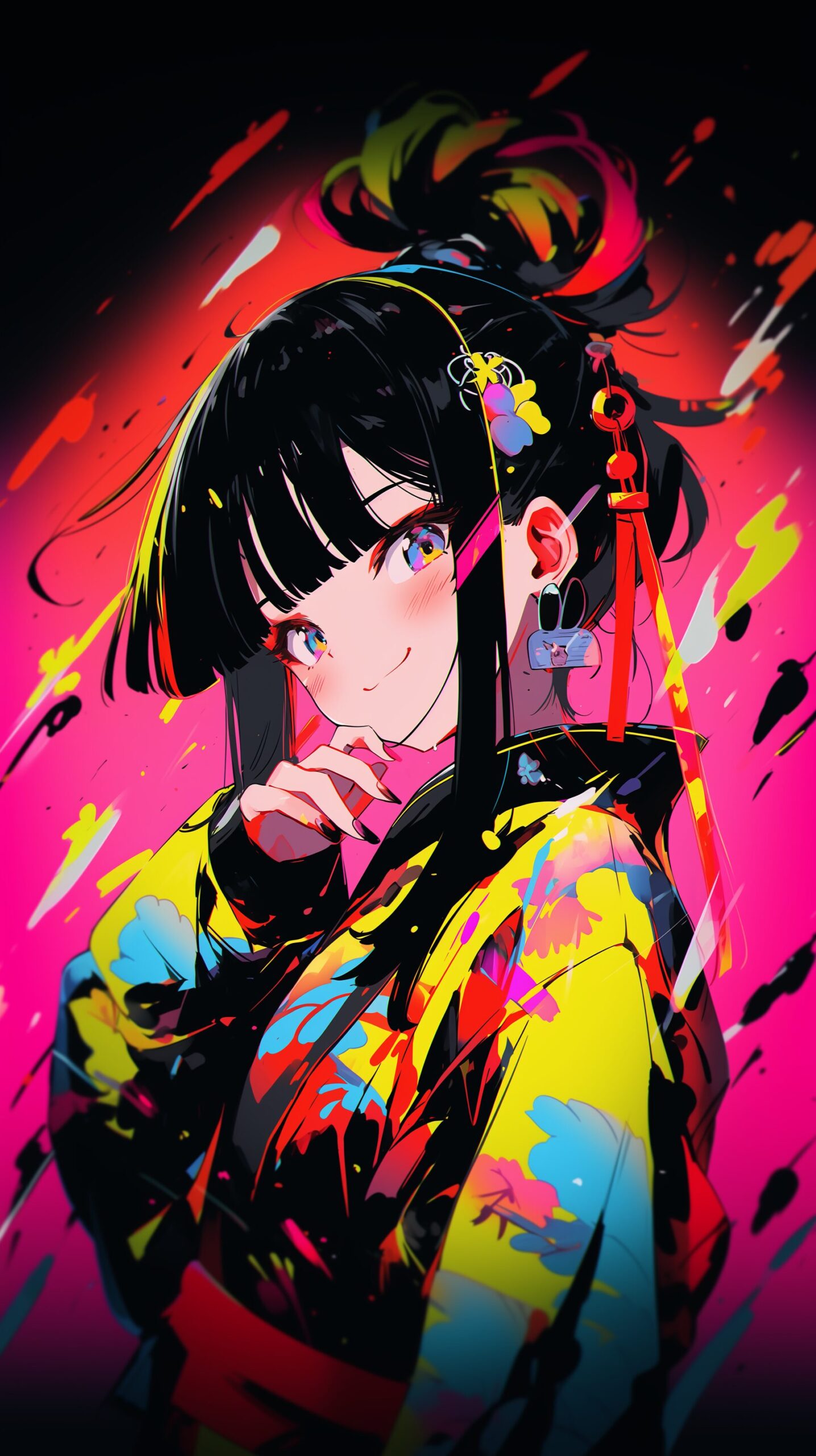 【壁紙】和風ファッションを着た女の子イラスト・待ち受けサイズ04