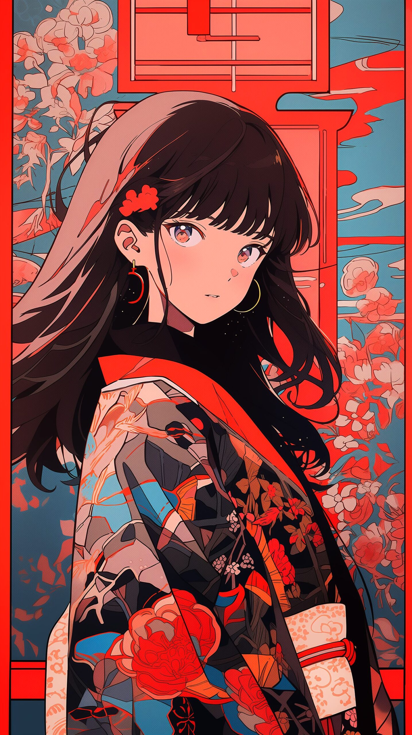 【壁紙】和風ファッションを着た女の子イラスト・待ち受けサイズ07