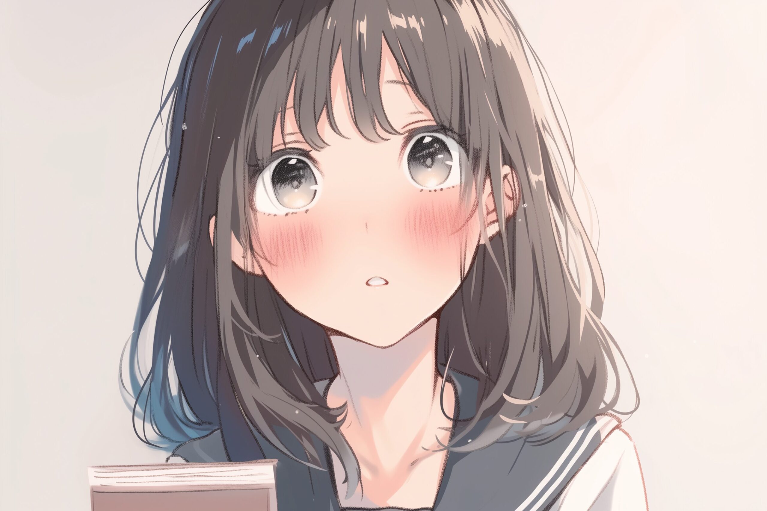 検索タグ:イラスト、キャラクター、女子、女の子、女性、女、女の人、アニメ、漫画、マンガ、若い、人物、顔、美しい、綺麗、きれい、キレイ、アート、お洒落、挿絵、インスタ、Instagram、AI生成画像、コピースペース、恋愛、恋、かわいい、可愛い、カワイイ、制服、ロングヘア、高校生、学生、セーラー服、笑顔、微笑み、微笑む、黒髪、キャラクター、