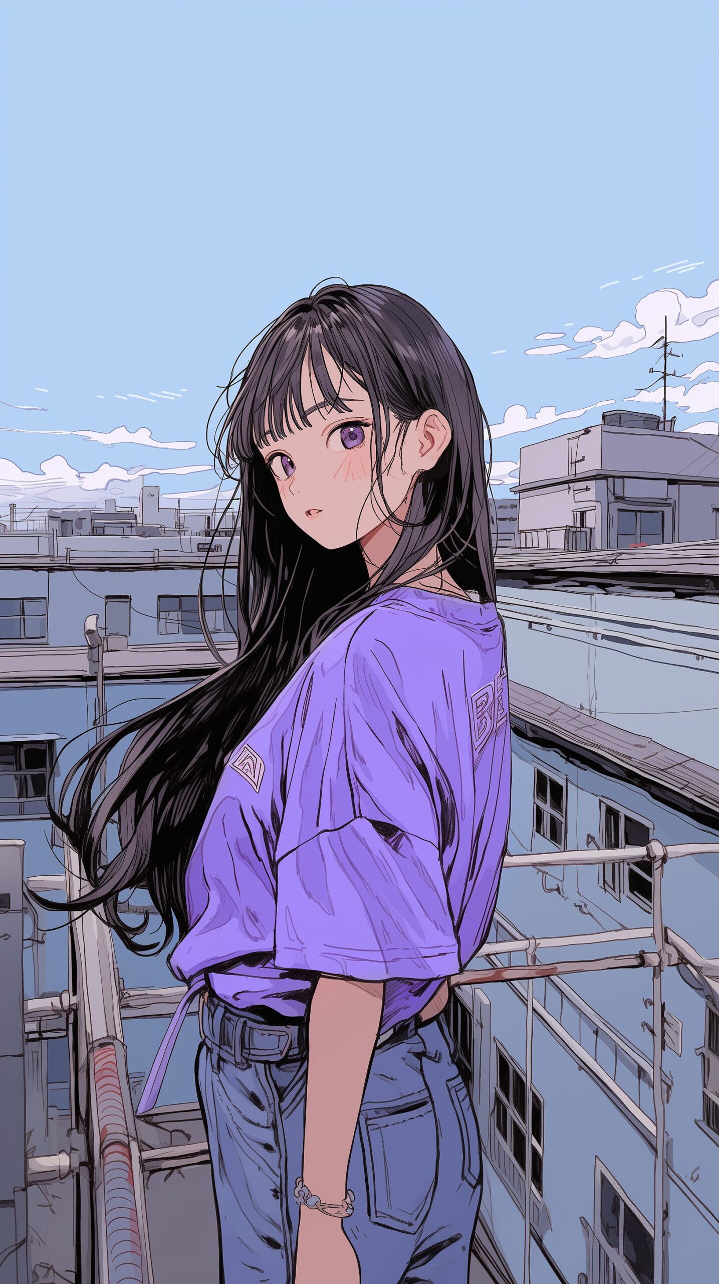 検索タグ:イラスト、ファッション、キャラクター、女性、女、女の子、女子、女の人、アニメ、漫画、マンガ、美人、美女、若い、かわいい、可愛い、カワイイ、人物、顔、美しい、綺麗、きれい、キレイ、アート、お洒落、女子高生、JK、挿絵、紫、パープル、シャツ、トップス、春服