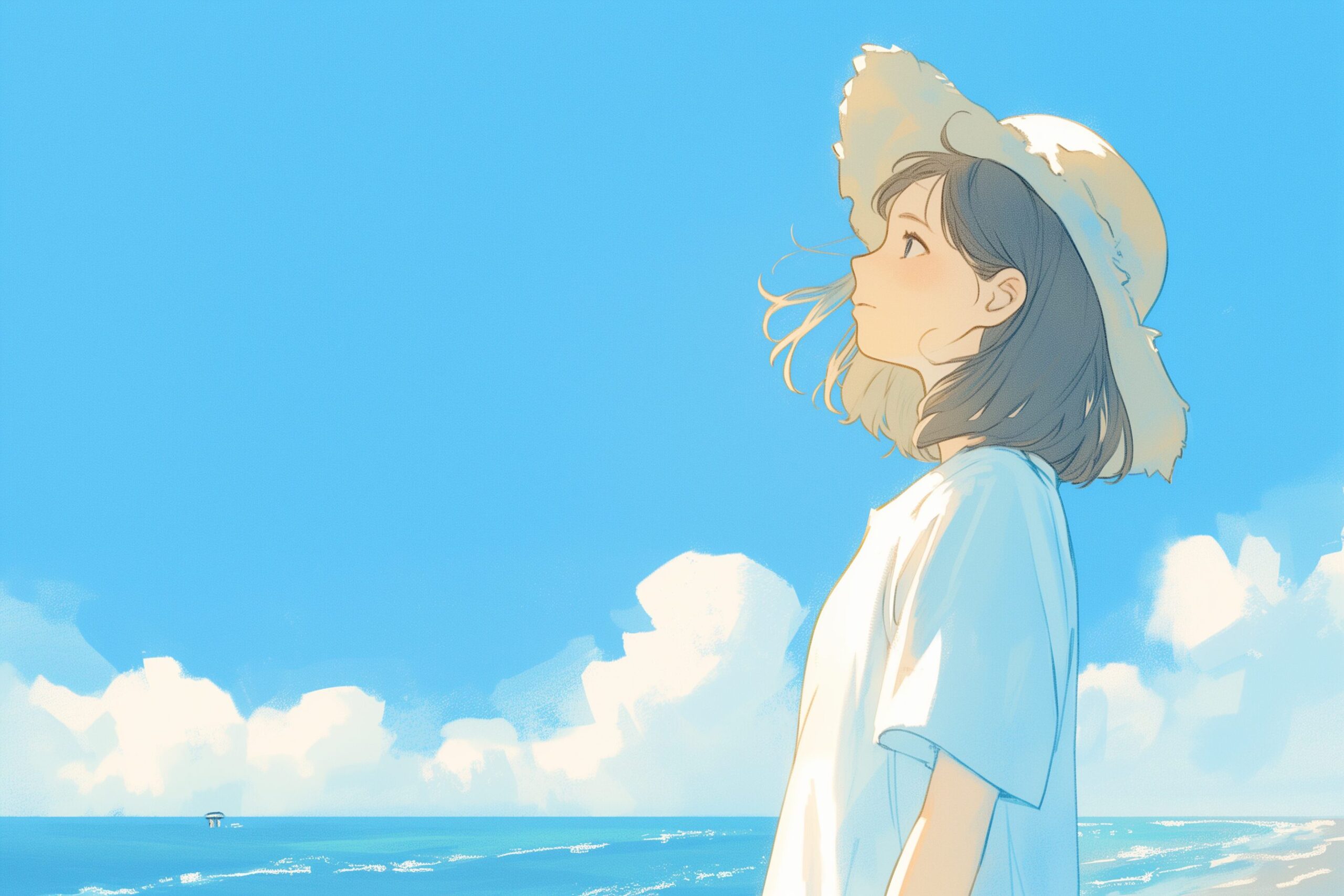 検索タグ:イラスト、ファッション、キャラクター、女性、女、女の子、女子、女の人、アニメ、漫画、マンガ、美人、美女、若い、かわいい、可愛い、カワイイ、人物、顔、美しい、綺麗、きれい、キレイ、アート、お洒落、女子高生、JK、挿絵、夏、春、パステルカラー、春服、インスタ、Instagram、夏、夏服、summer、fashion、青、Blue、ブルー、サムネイル、アイキャッチ、コピースペース、海、ビーチ