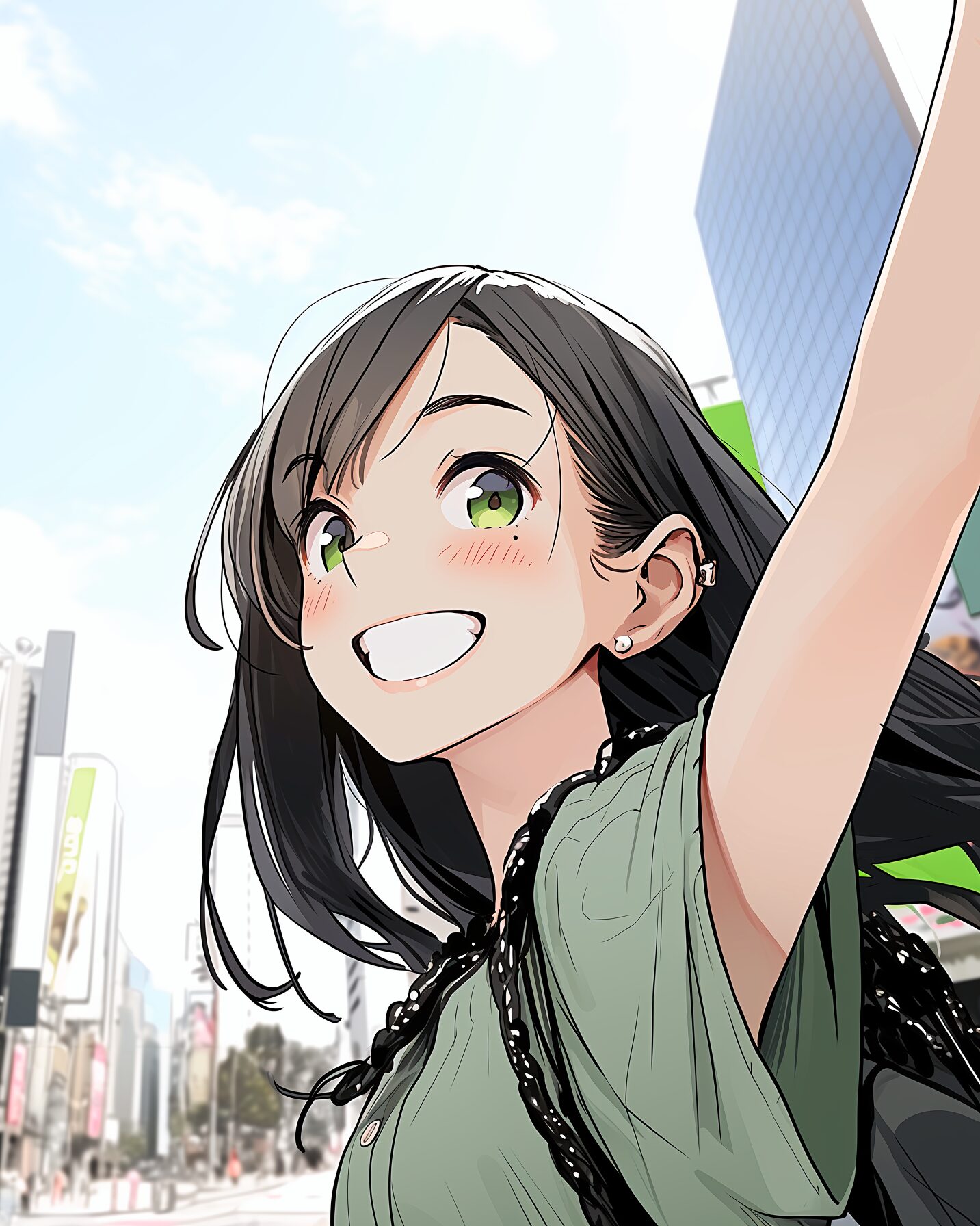検索タグ:イラスト、ファッション、キャラクター、女性、女、女の子、女子、女の人、アニメ、漫画、マンガ、美人、美女、若い、かわいい、可愛い、カワイイ、人物、顔、美しい、綺麗、きれい、キレイ、アート、お洒落、女子高生、JK、挿絵、夏、春、パステルカラー、春服、インスタ、Instagram、夏、夏服、summer、fashion、緑、グリーン、Green、指を差す、ピース