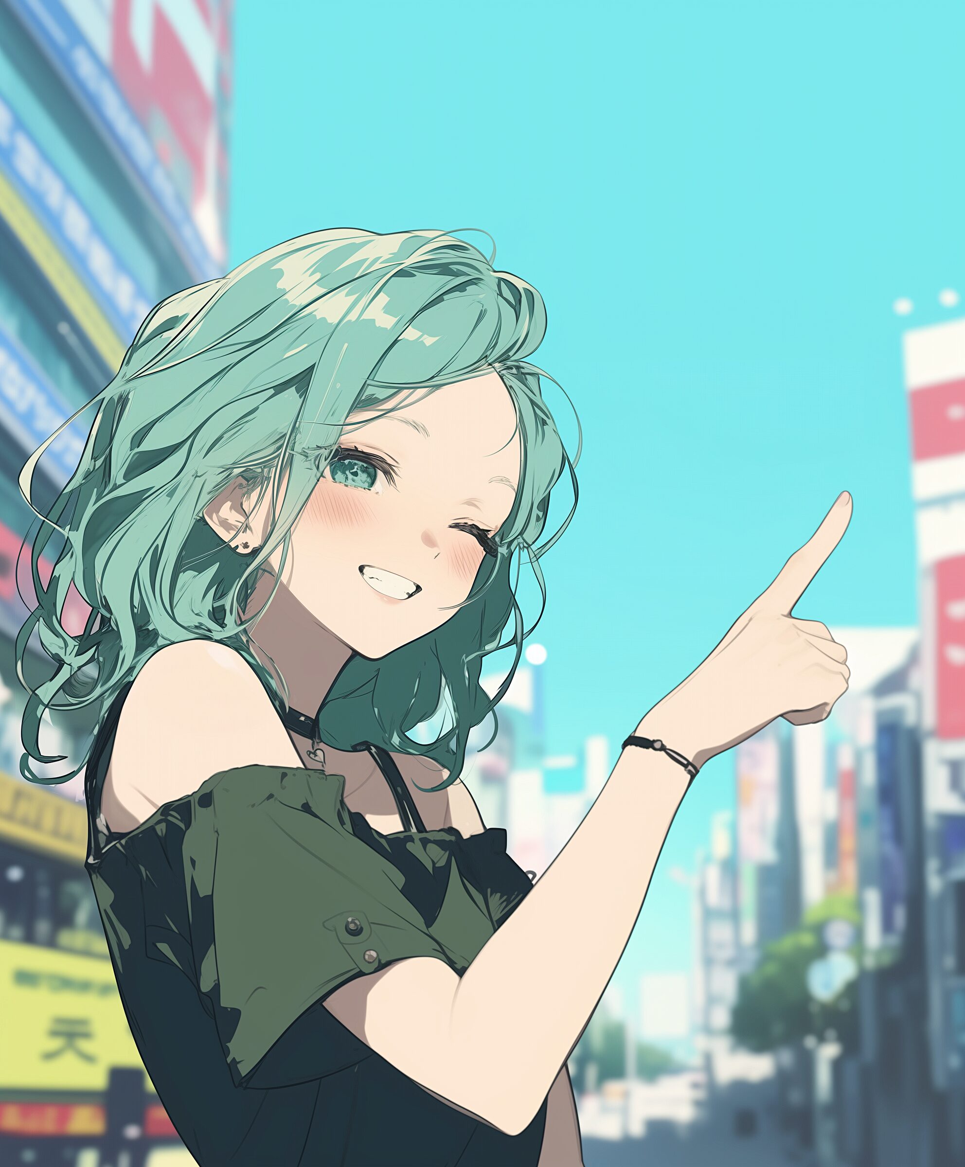 検索タグ:イラスト、ファッション、キャラクター、女性、女、女の子、女子、女の人、アニメ、漫画、マンガ、美人、美女、若い、かわいい、可愛い、カワイイ、人物、顔、美しい、綺麗、きれい、キレイ、アート、お洒落、女子高生、JK、挿絵、夏、春、パステルカラー、春服、インスタ、Instagram、夏、夏服、summer、fashion、緑、グリーン、Green、指を差す、ピース