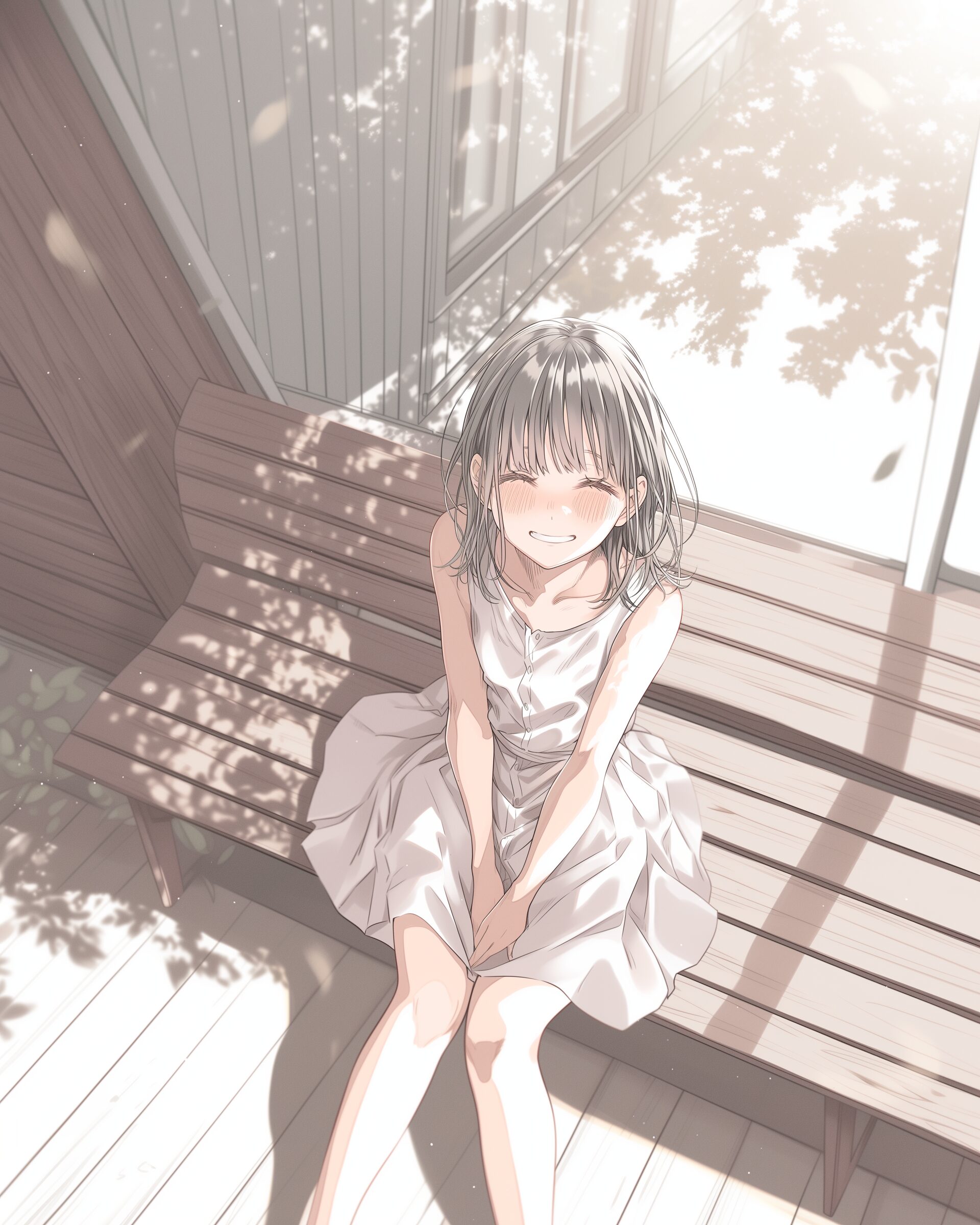 検索タグ:イラスト、ファッション、キャラクター、女性、女、女の子、女子、女の人、アニメ、漫画、マンガ、美人、美女、若い、かわいい、可愛い、カワイイ、人物、顔、美しい、綺麗、きれい、キレイ、アート、お洒落、挿絵、インスタ、Instagram、AI生成画像、fashion、コピースペース、ショートヘア、夏服、笑顔、微笑み、微笑む、見上げる、ワンピース、夏、ベンチ、座る、休憩