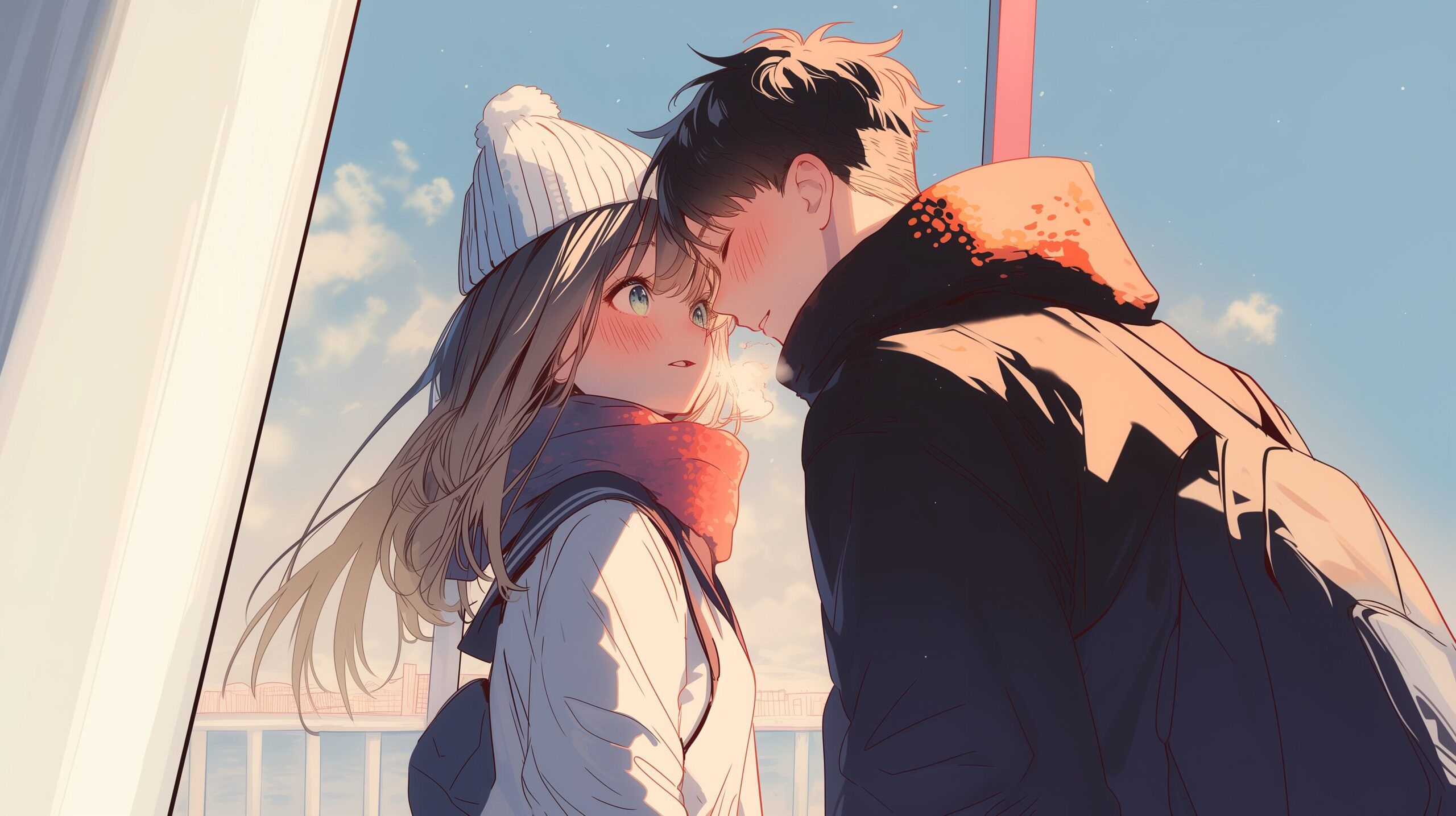 検索タグ:イラスト、キャラクター、女性、女、女の子、女子、女の人、アニメ、漫画、マンガ、美人、美女、若い、かわいい、可愛い、カワイイ、人物、顔、美しい、綺麗、きれい、キレイ、アート、お洒落、挿絵、インスタ、Instagram、AI生成画像、コピースペース、カップル、夕日を眺める、幸せ、恋愛、デート、恋、愛、ラブ、片思い、両思い、冬服、ニット帽、エモい、夕焼け、夕方、ドキドキ、キスシーン