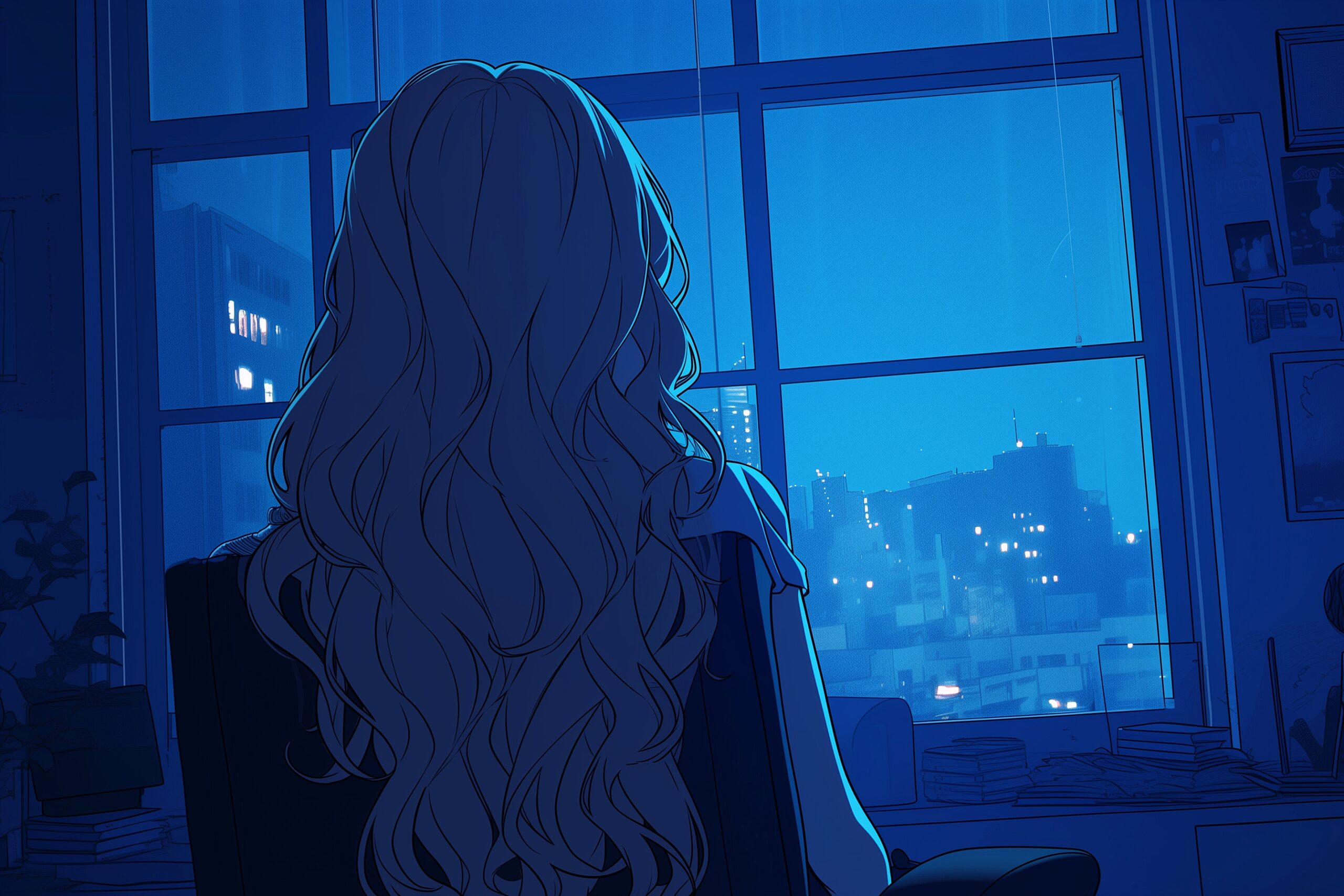 検索タグ:イラスト、キャラクター、女性、女、女の子、女子、女の人、アニメ、漫画、マンガ、若い、人物、美しい、綺麗、きれい、キレイ、芸術、アート、お洒落、おしゃれ、オシャレ、後ろ姿、考え事、考える、悩み、悩みごと、悩む、雨、雨の日、窓際、インテリア、自宅