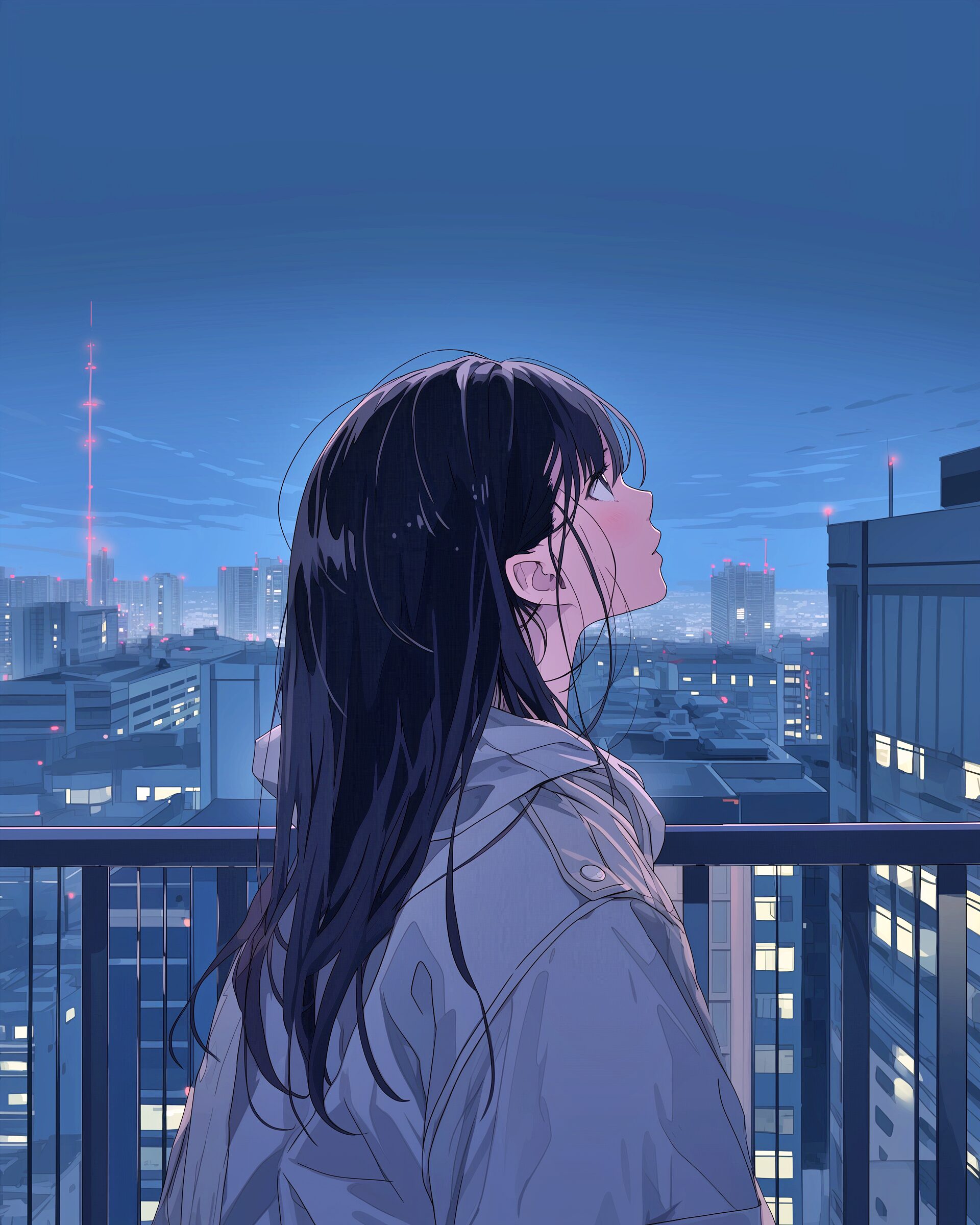 検索タグ:イラスト、ファッション、キャラクター、女性、女、女の子、女子、女の人、アニメ、漫画、マンガ、美人、美女、若い、かわいい、可愛い、カワイイ、人物、顔、美しい、綺麗、きれい、キレイ、芸術、アート、顔、冬服、冬、洋服、お洒落、切ない、悲しい、雰囲気、失恋、夜景、見上げる