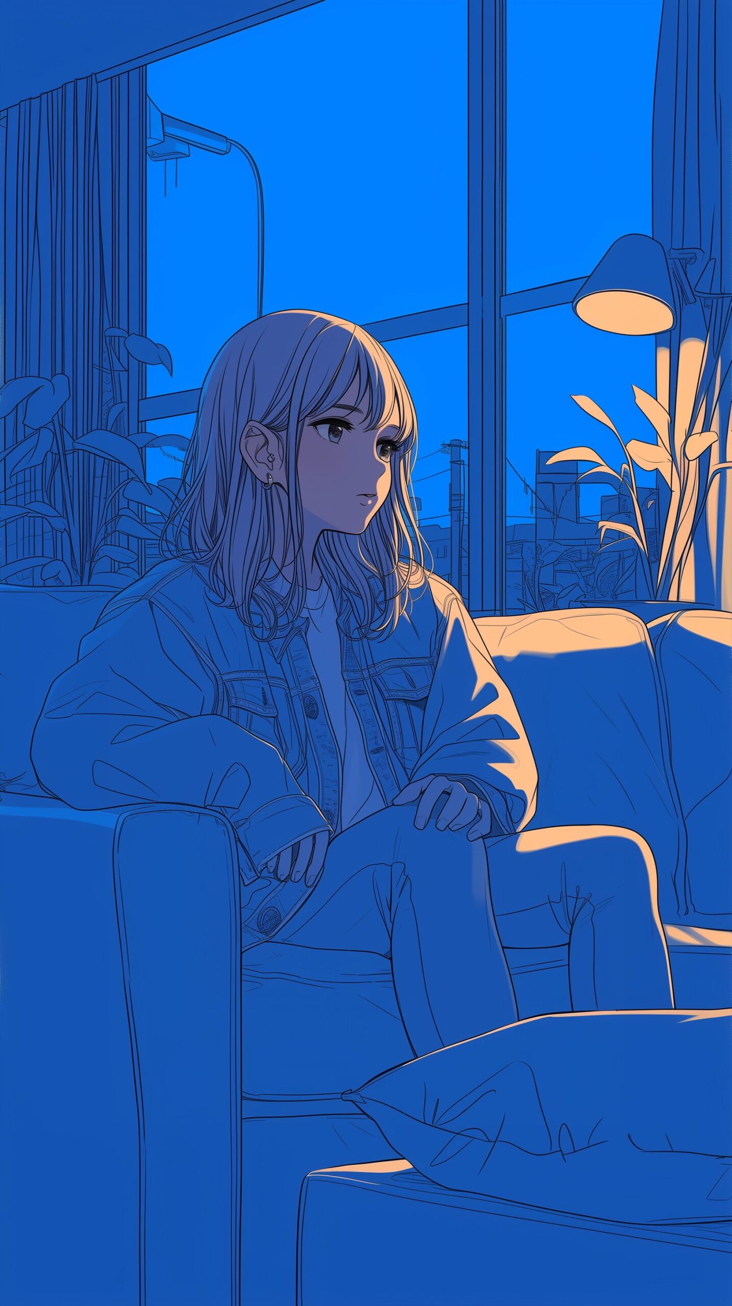 検索タグ:イラスト、ファッション、キャラクター、女性、女、女の子、女子、女の人、アニメ、漫画、マンガ、美人、美女、若い、かわいい、可愛い、カワイイ、人物、顔、美しい、綺麗、きれい、キレイ、アート、洋服、お洒落、女子高生、JK、横顔、切ない、挿絵、夜、青、ブルー、デニムジャケット