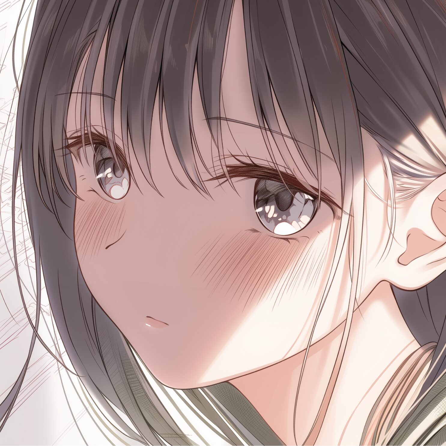 検索タグ:イラスト、キャラクター、女子、女の子、女性、女、女の人、アニメ、漫画、マンガ、若い、人物、顔、美しい、綺麗、きれい、キレイ、アート、お洒落、挿絵、インスタ、Instagram、AI生成画像、コピースペース、かわいい、可愛い、カワイイ、キャラクター、ショートヘア、黒髪、顔、切ない、恋心、アップ