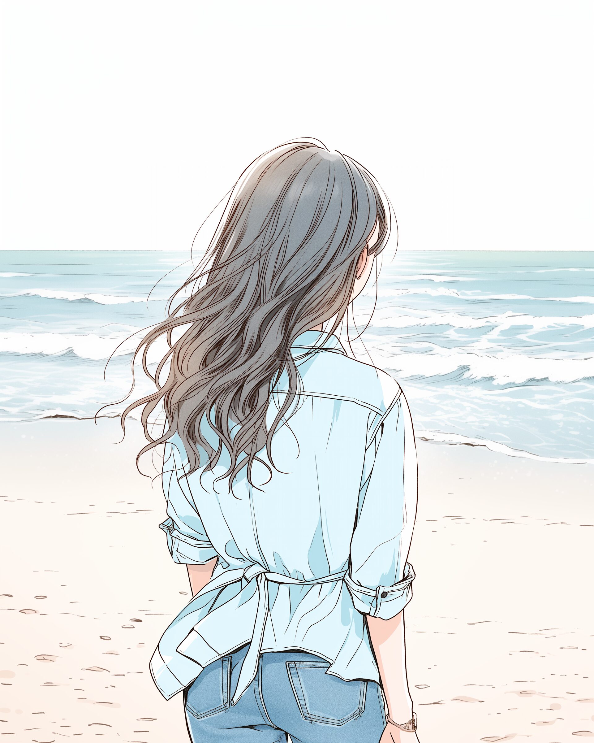 検索タグ:イラスト、ファッション、キャラクター、女性、女、女の子、女子、女の人、アニメ、漫画、マンガ、美人、美女、若い、かわいい、可愛い、カワイイ、人物、顔、美しい、綺麗、きれい、キレイ、アート、お洒落、女子高生、JK、挿絵、夏、春、シャツ、トップス、春服、後ろ姿
