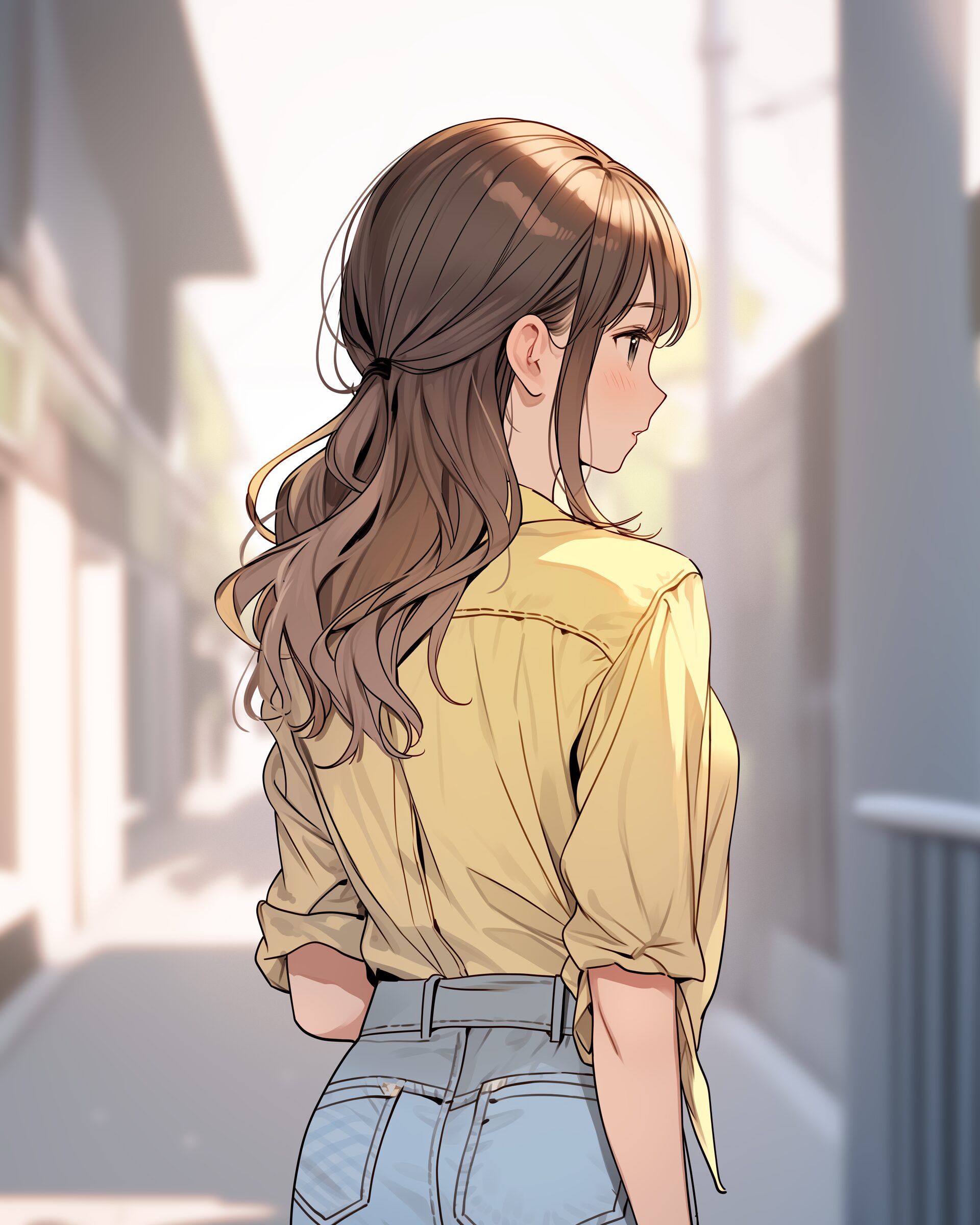 検索タグ:イラスト、ファッション、キャラクター、女性、女、女の子、女子、女の人、アニメ、漫画、マンガ、美人、美女、若い、かわいい、可愛い、カワイイ、人物、顔、美しい、綺麗、きれい、キレイ、アート、お洒落、女子高生、JK、挿絵、夏、春、シャツ、トップス、春服、後ろ姿